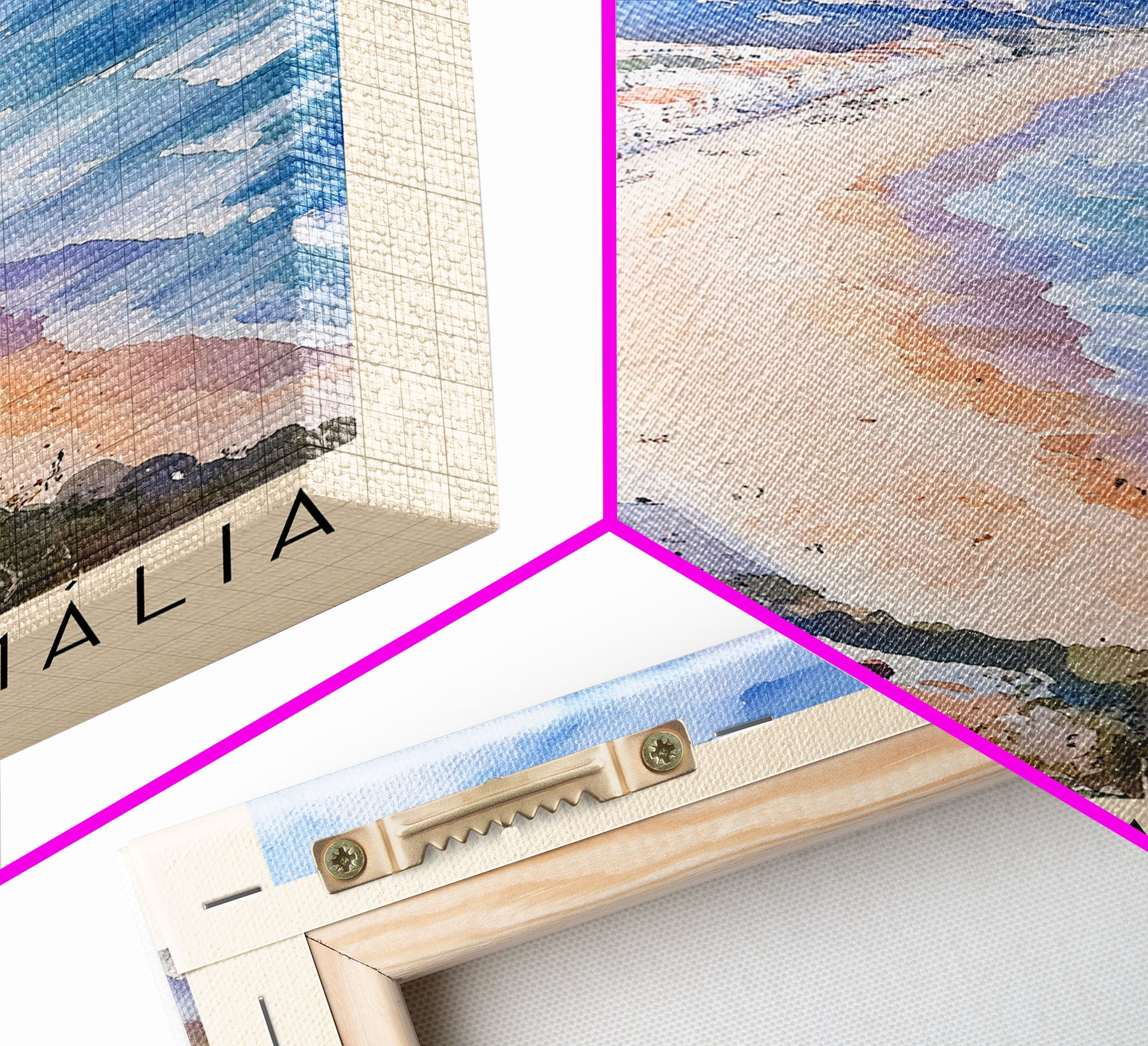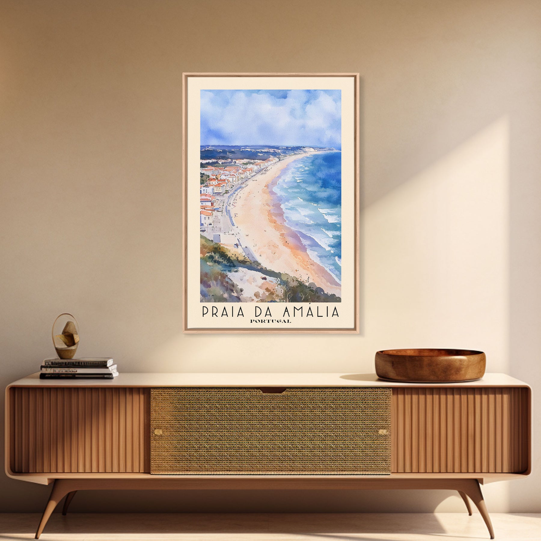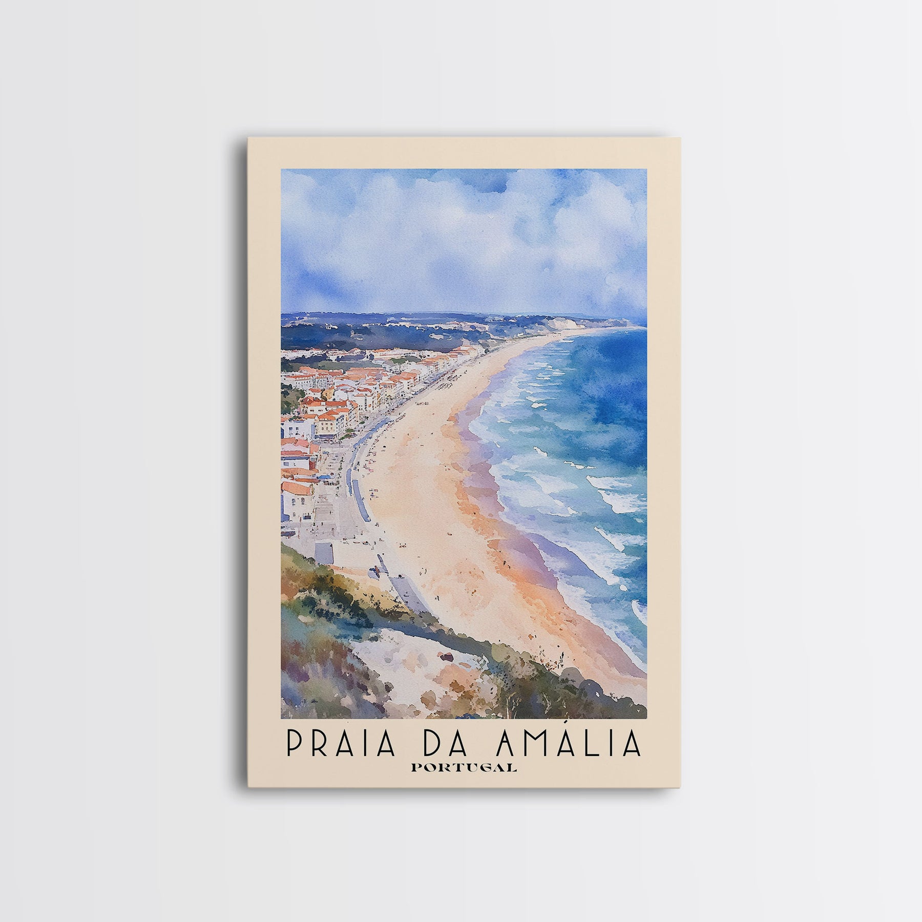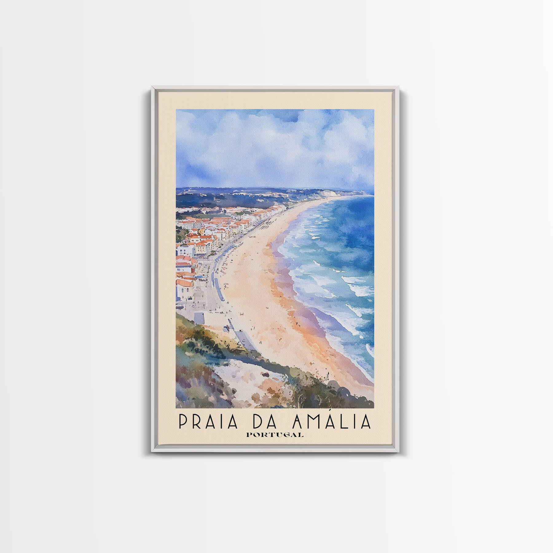 Praia da Amália, Portugal Watercolor Beach Print, Vacation Gift, Portugal Wall Art, Framed Canvas Print, Framed Beach Painting