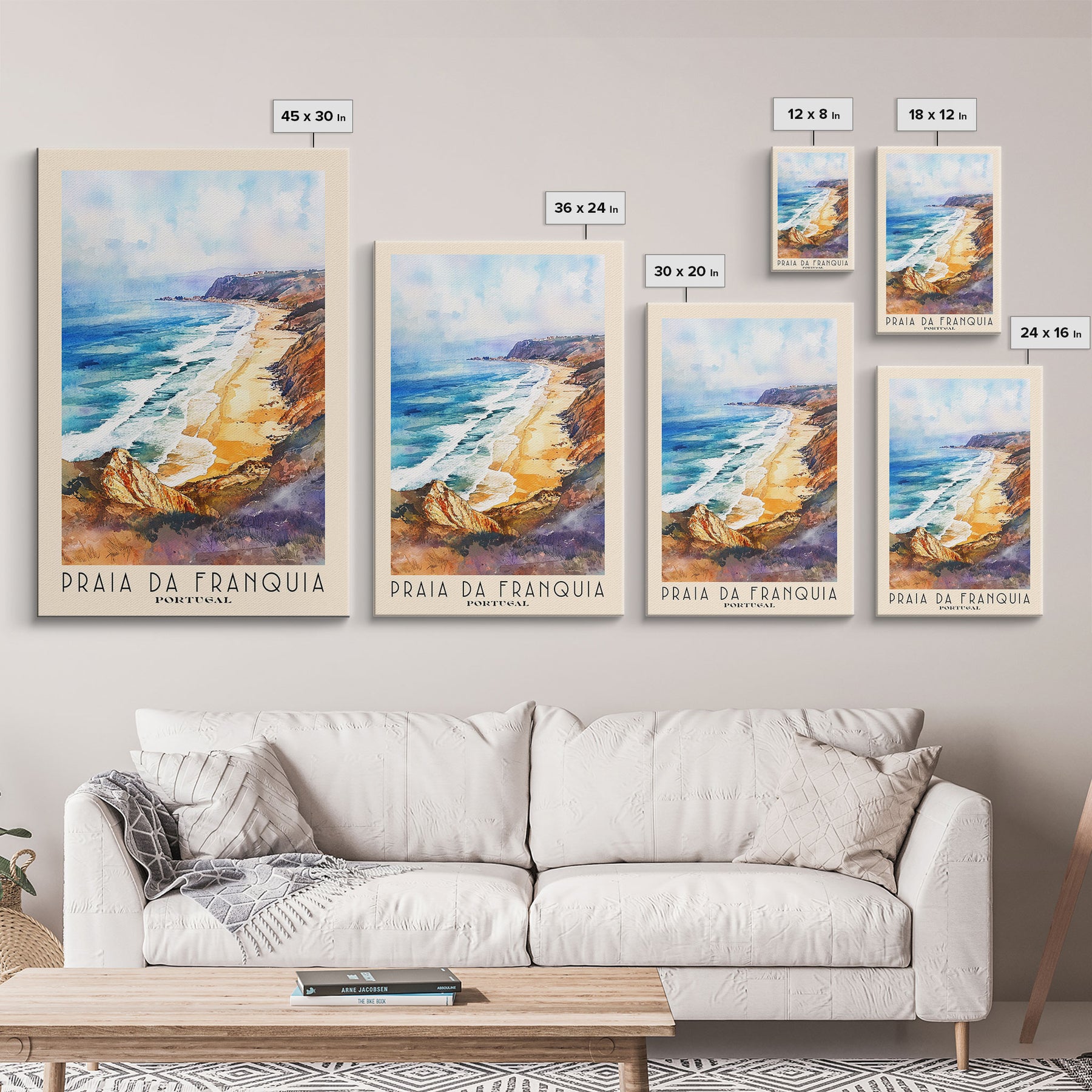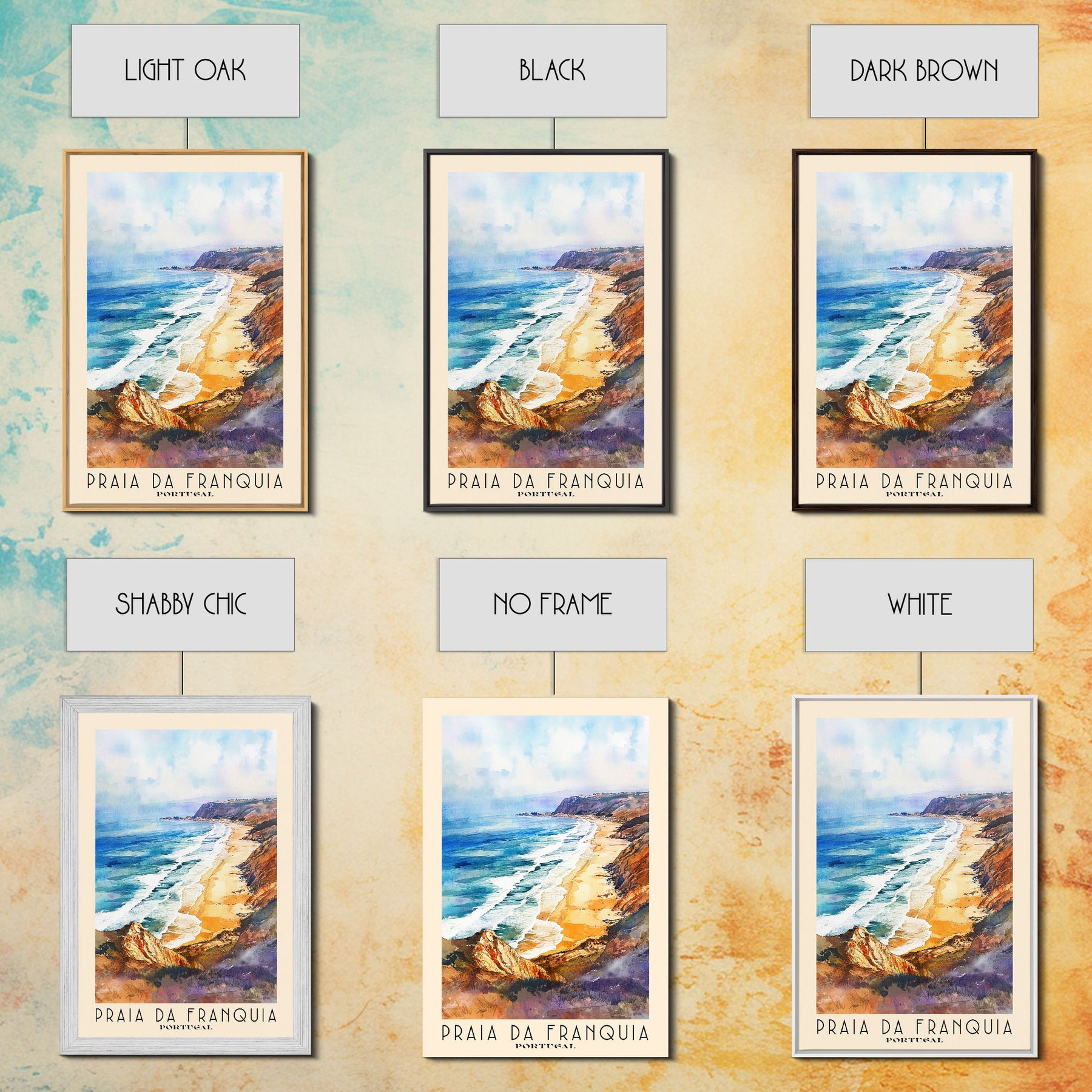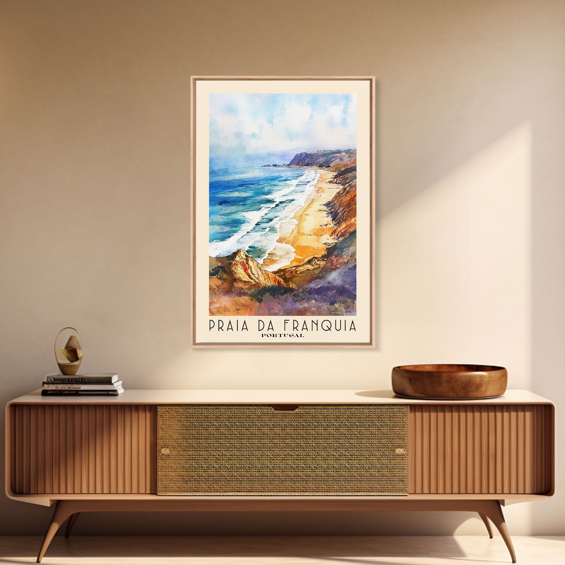 Praia da Franquia, Portugal Watercolor Print, Vacation Gift, Portugal Wall Art, Beach Painting, Beach Decor, Large Wall Art, Wood Frame Art