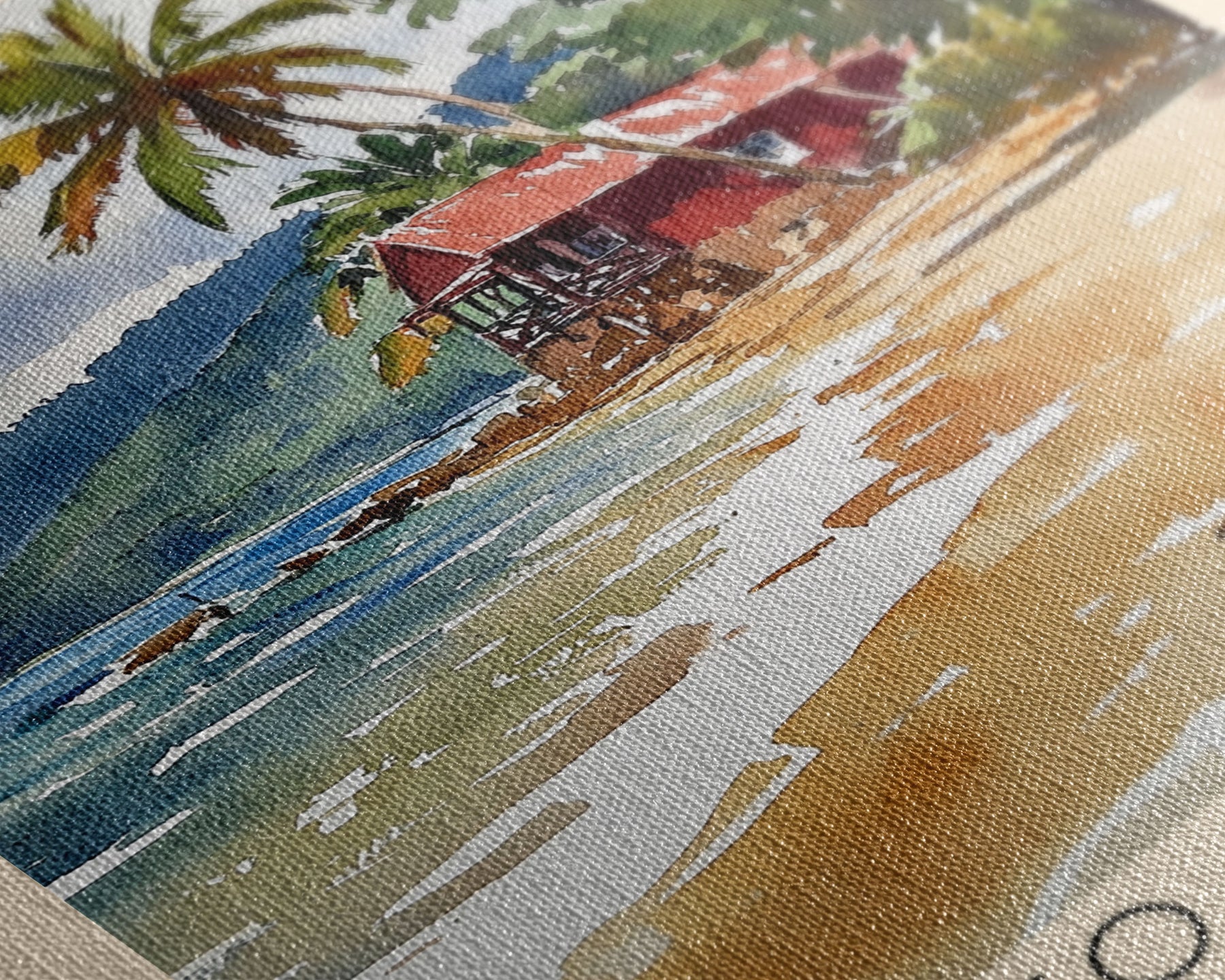 Most of our canvases are made in the USA, with the exception of canvases ordered with the light oak unstained frames, and any large canvases (24x48, 30x60, 16x48 and 20x60) ordered WITH a frame. These are temporarily made in and shipped from Europe, while we try to find a more consistent supplier in the USA.