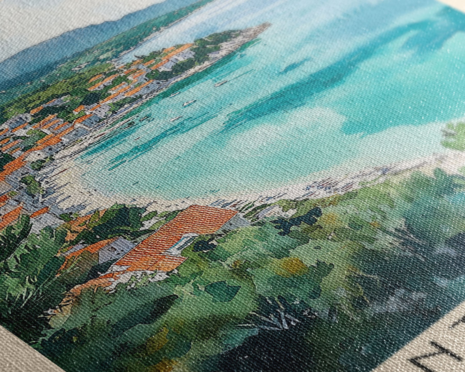 Most of our canvases are made in the USA, with the exception of canvases ordered with the light oak unstained frames, and any large canvases (24x48, 30x60, 16x48 and 20x60) ordered WITH a frame. These are temporarily made in and shipped from Europe, while we try to find a more consistent supplier in the USA.