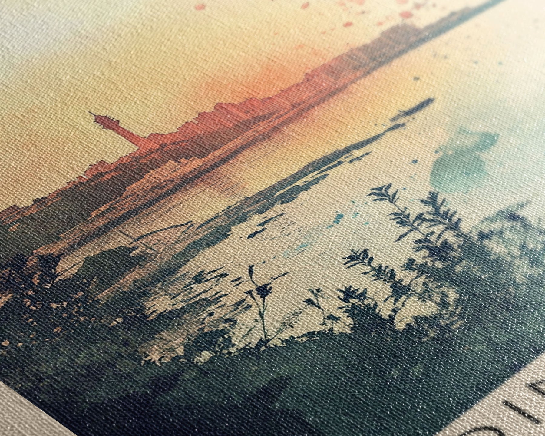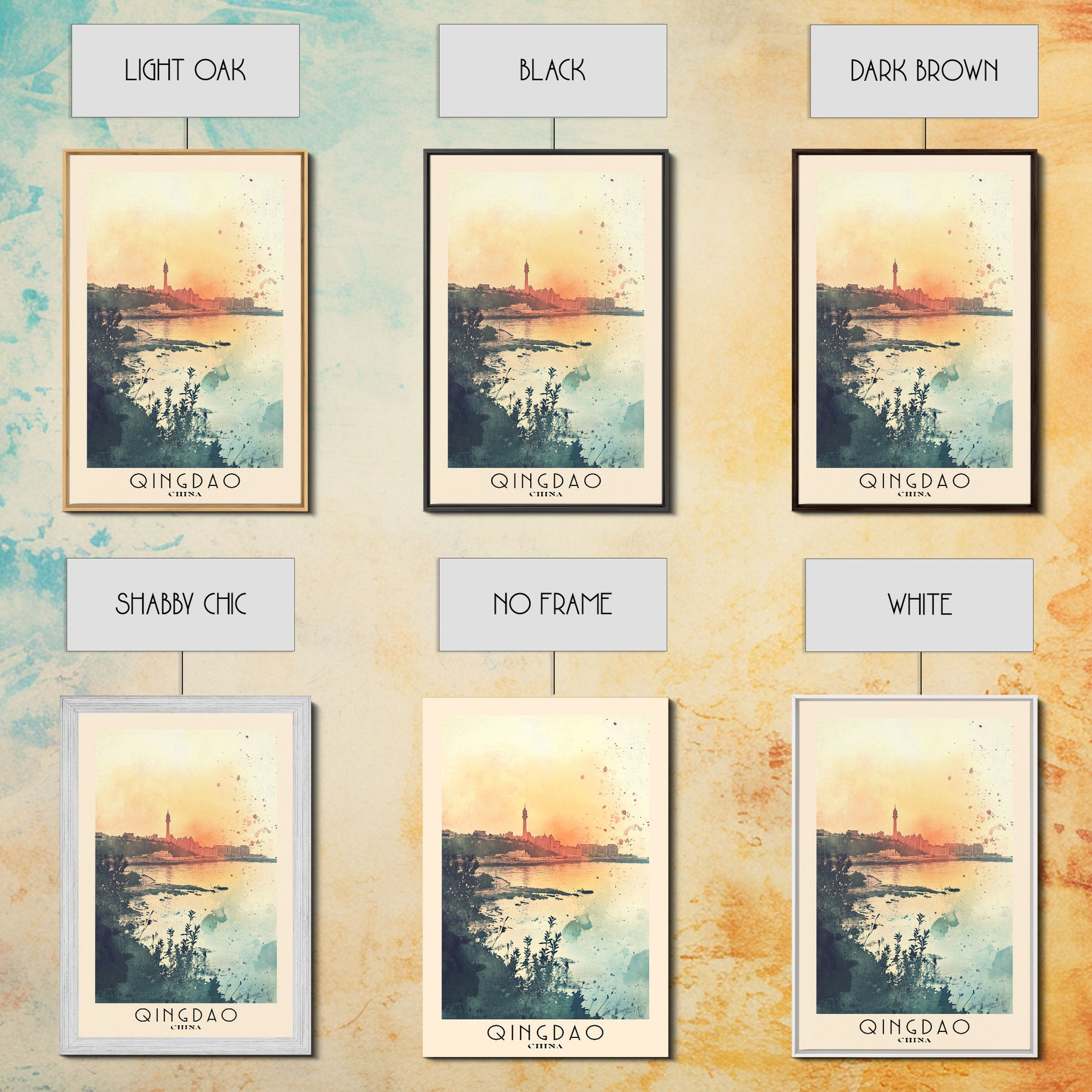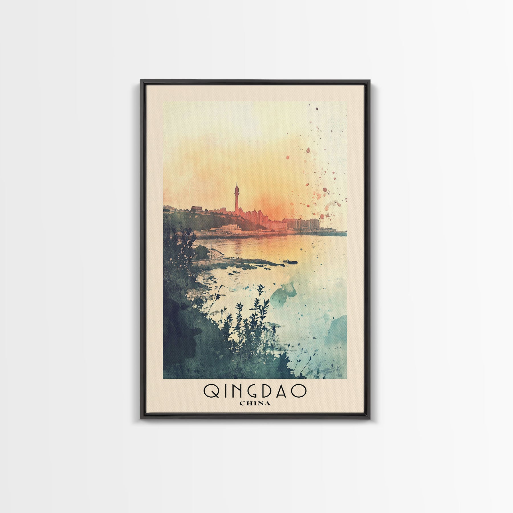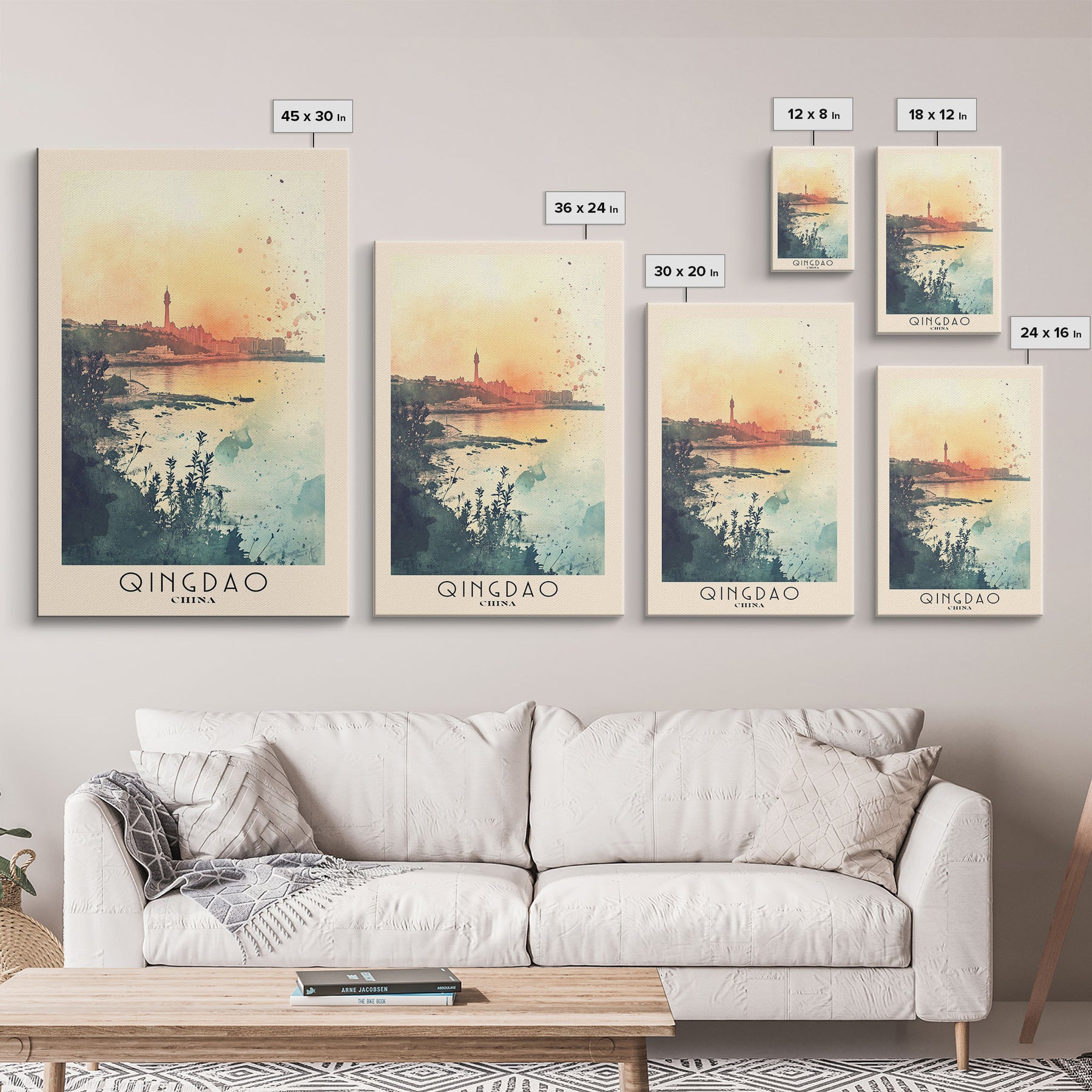 Qingdao, China Watercolor Beach Print, Vacation Gift, China Wall Art, Framed Canvas Print, Framed Beach Painting