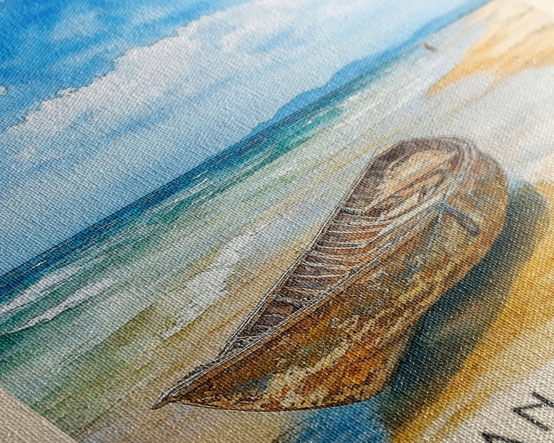 Most of our canvases are made in the USA, with the exception of canvases ordered with the light oak unstained frames, and any large canvases (24x48, 30x60, 16x48 and 20x60) ordered WITH a frame. These are temporarily made in and shipped from Europe, while we try to find a more consistent supplier in the USA.