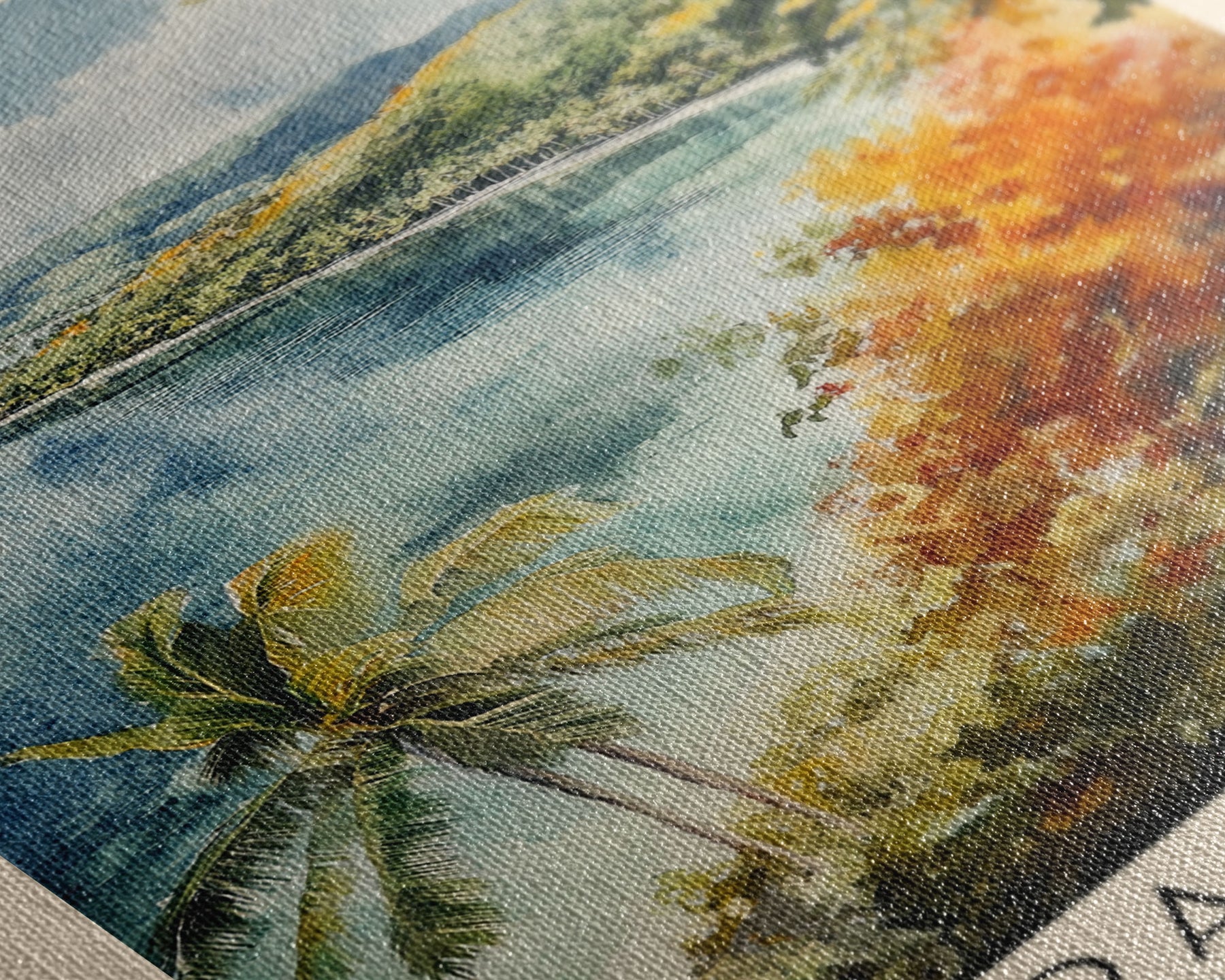 Most of our canvases are made in the USA, with the exception of canvases ordered with the light oak unstained frames, and any large canvases (24x48, 30x60, 16x48 and 20x60) ordered WITH a frame. These are temporarily made in and shipped from Europe, while we try to find a more consistent supplier in the USA.