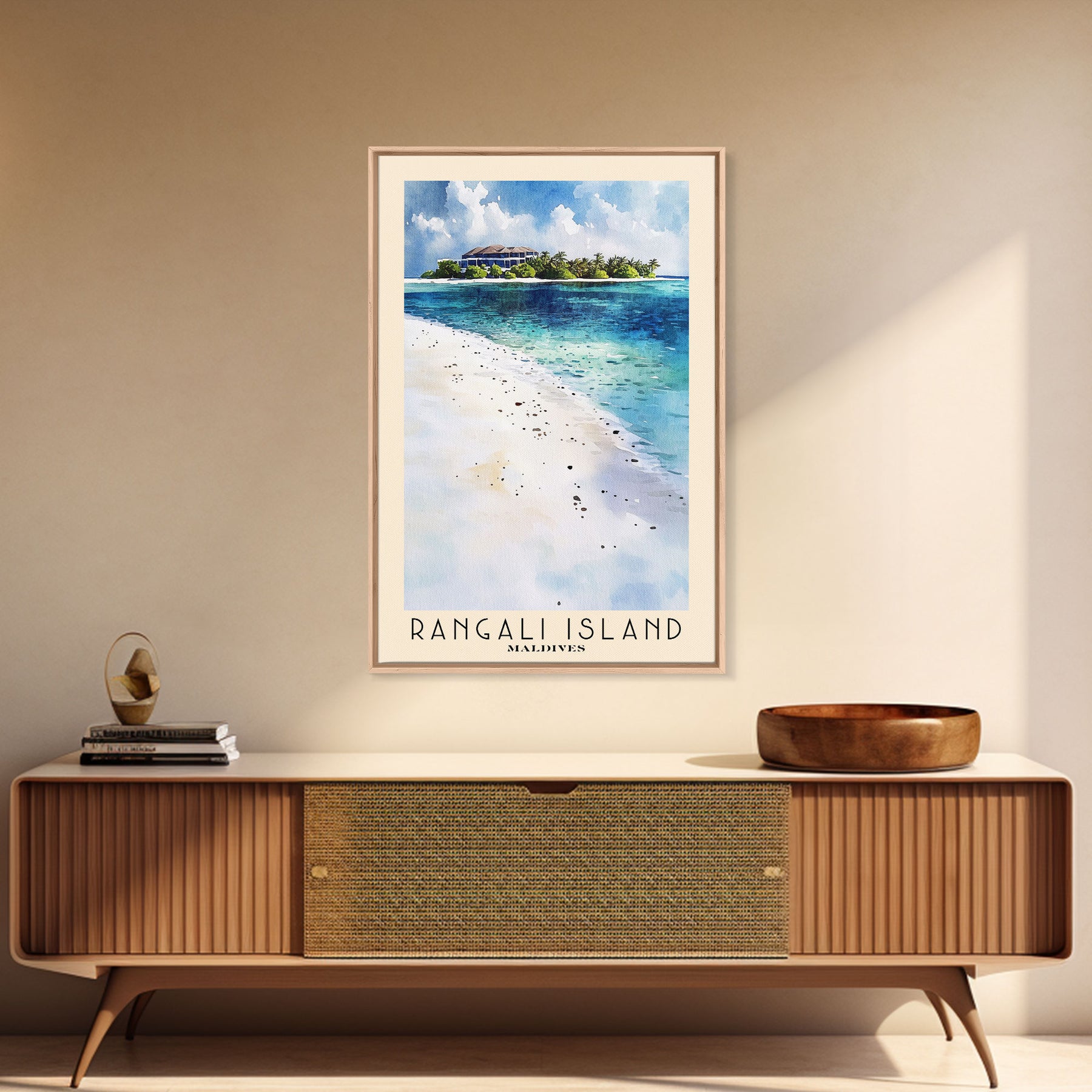 Rangali Island, Maldives Watercolor Beach Print, Vacation Gift, Maldives Wall Art, Framed Canvas Print, Framed Beach Painting