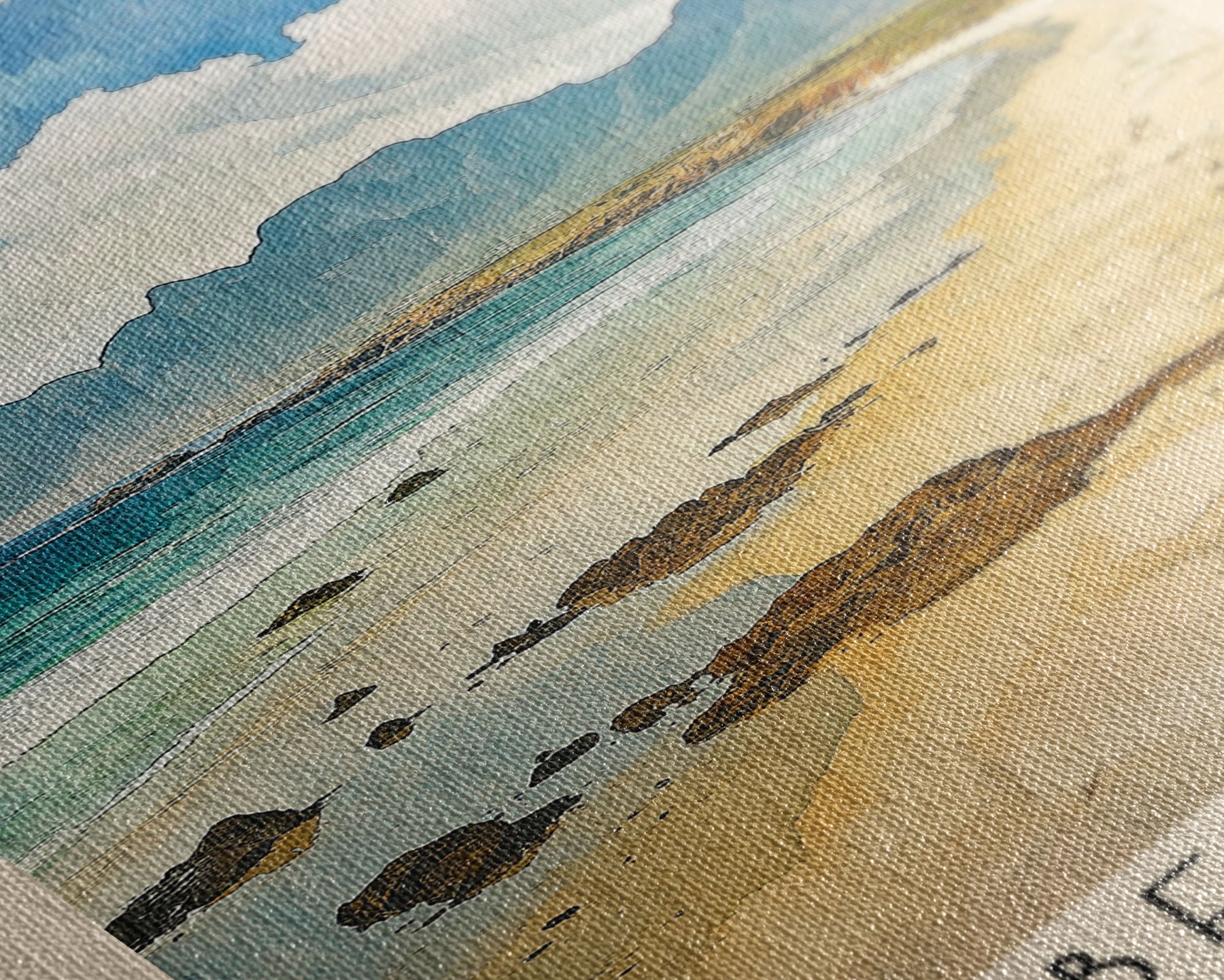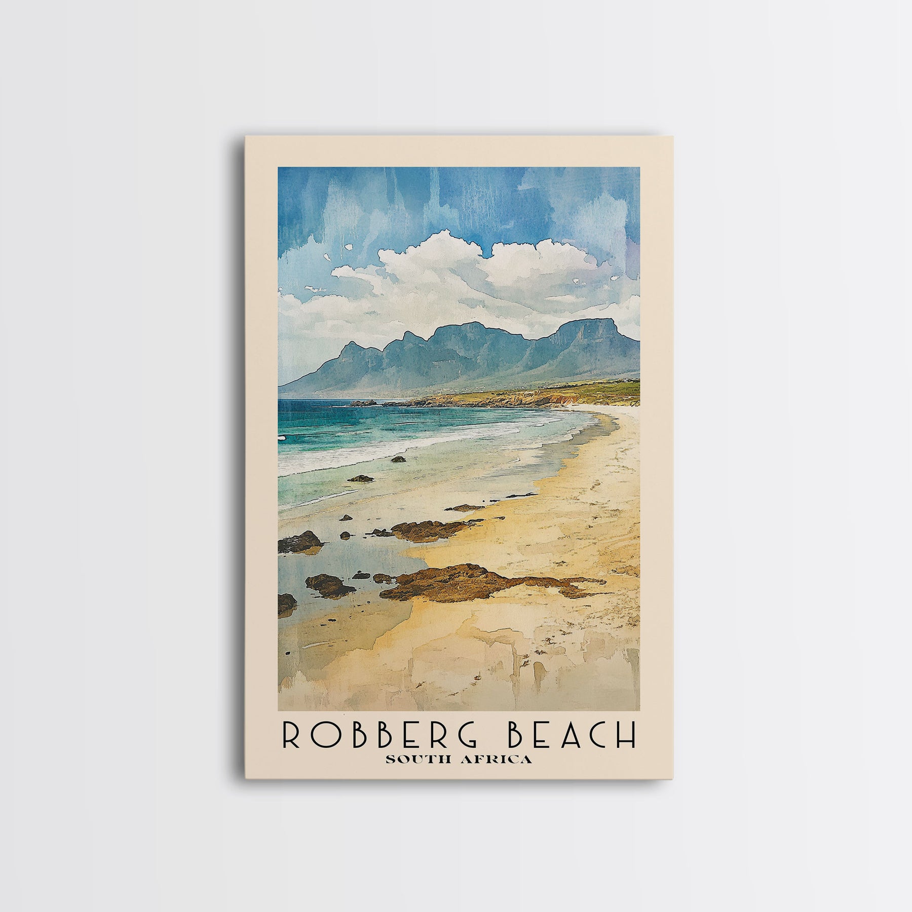 Robberg Beach, South Africa Watercolor Beach Print, Vacation Gift, South Africa Wall Art, Framed Canvas Print, Framed Beach Painting