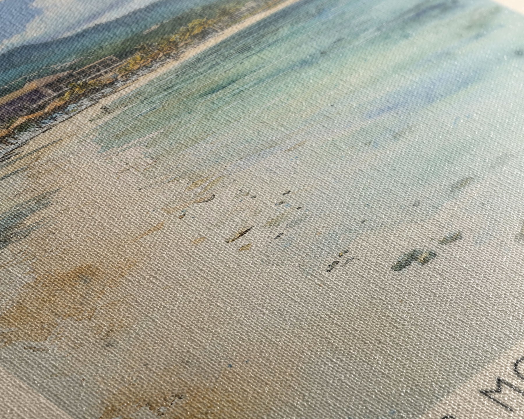 Most of our canvases are made in the USA, with the exception of canvases ordered with the light oak unstained frames, and any large canvases (24x48, 30x60, 16x48 and 20x60) ordered WITH a frame. These are temporarily made in and shipped from Europe, while we try to find a more consistent supplier in the USA.