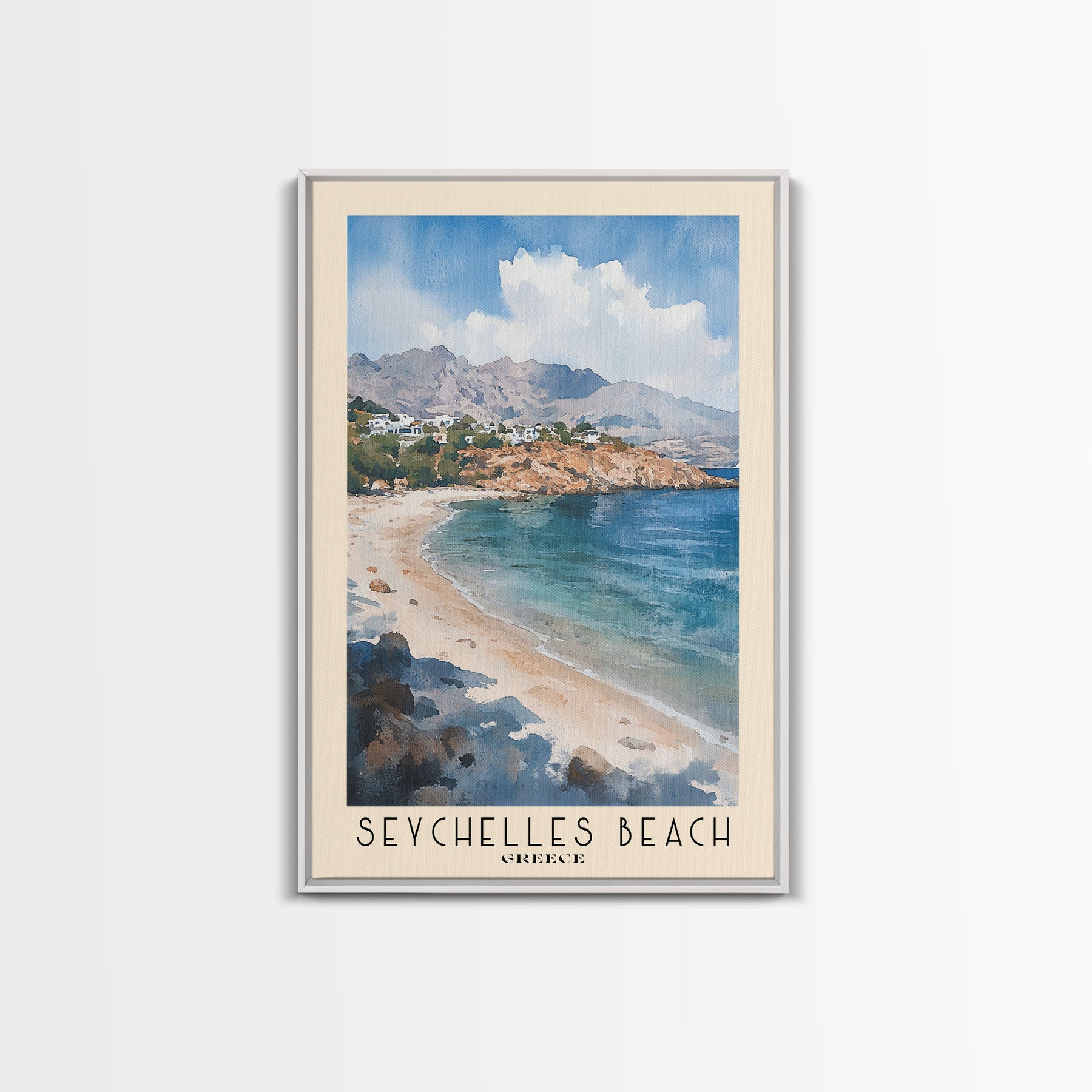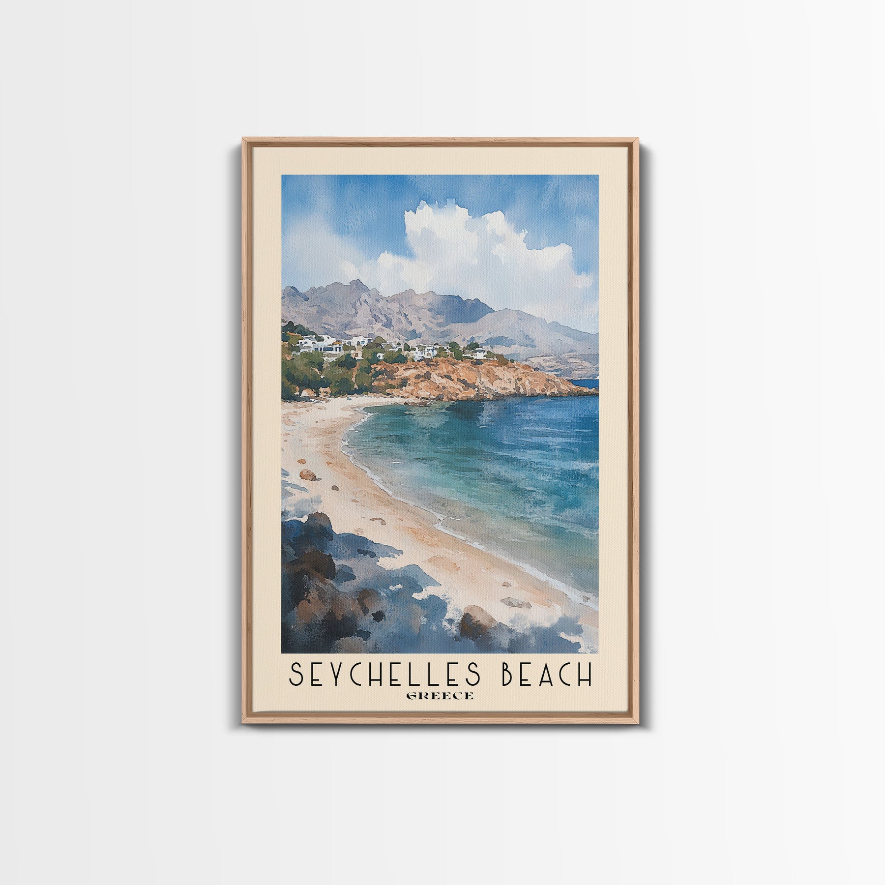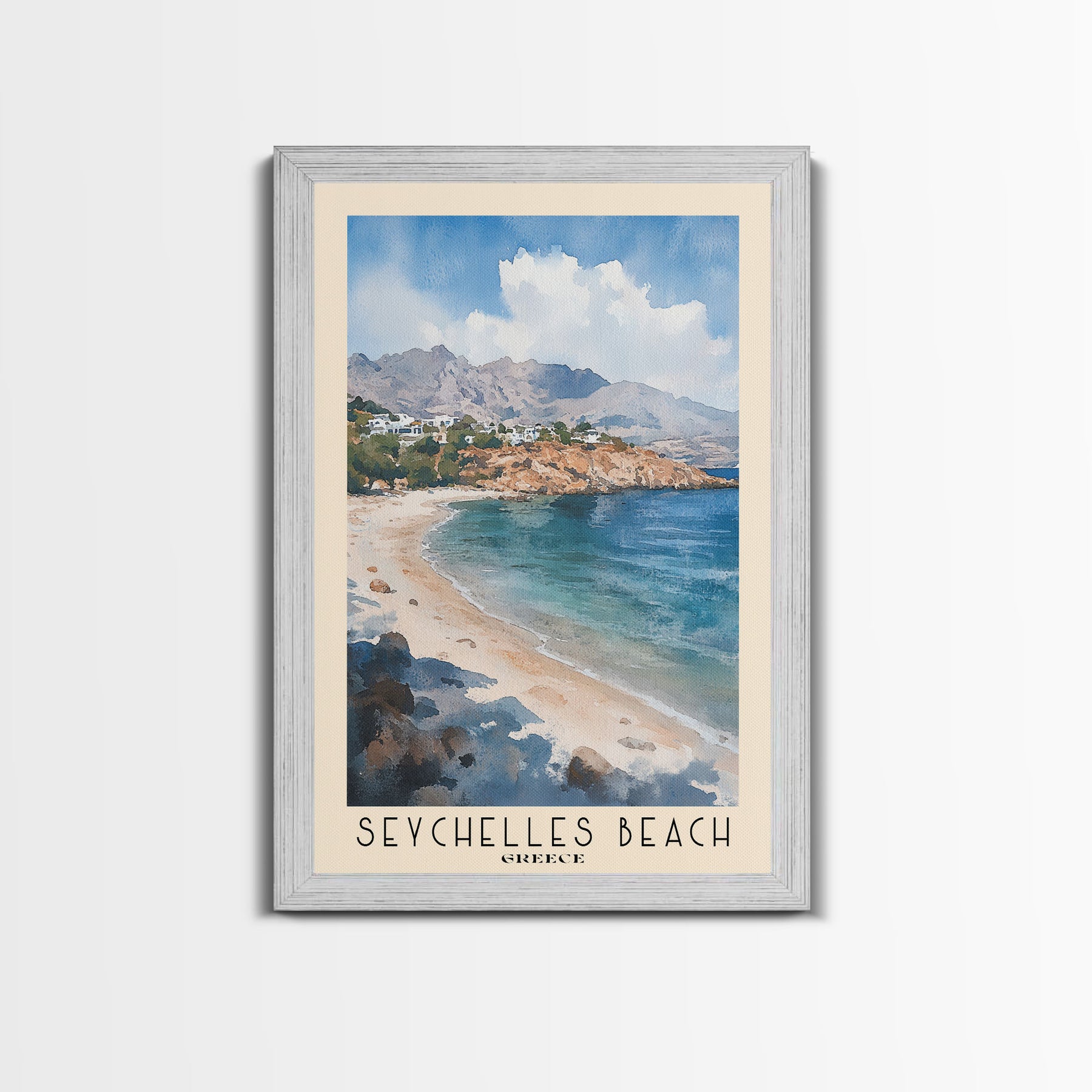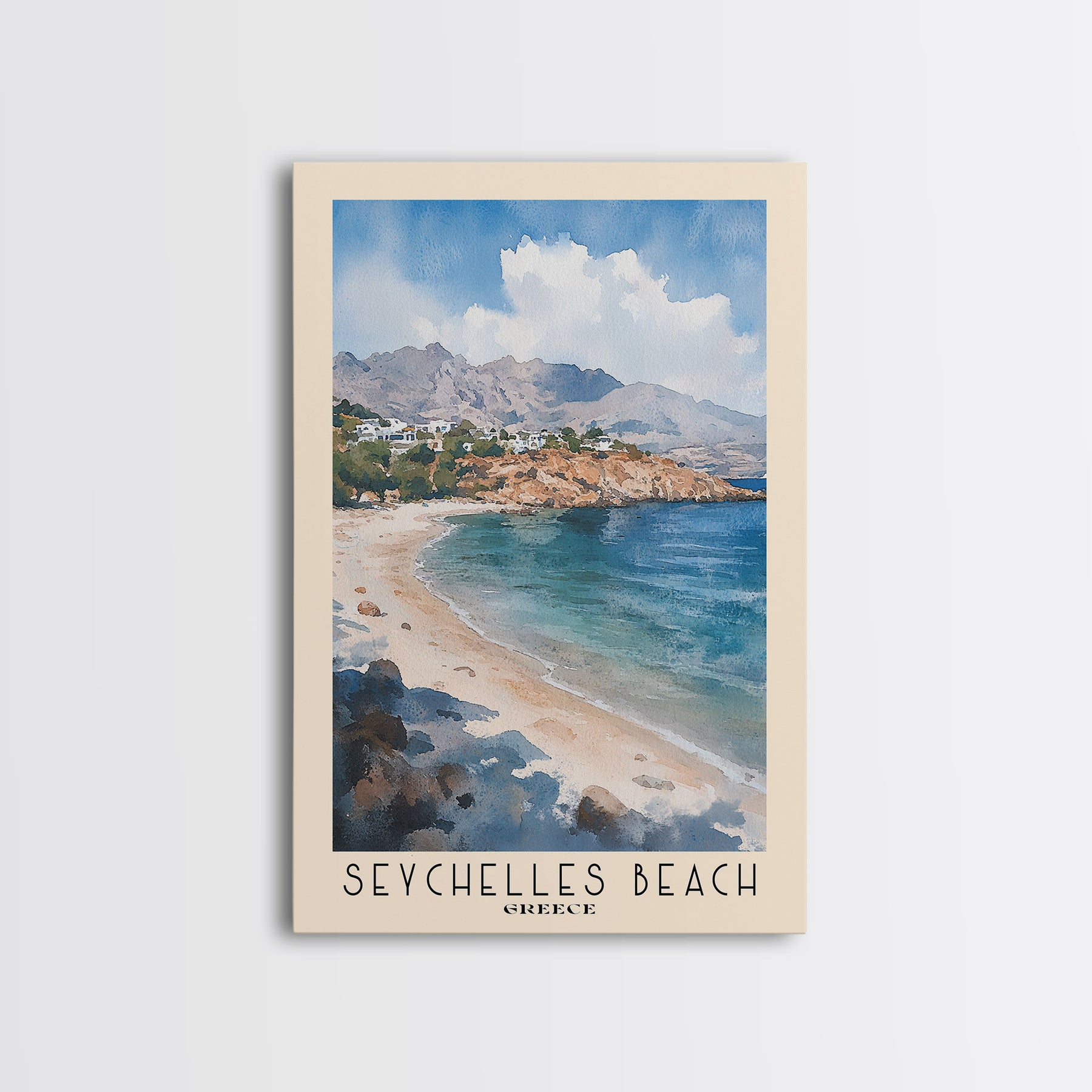 Seychelles Beach, Greece Watercolor Print, Vacation Gift, Greece Wall Art, Beach Painting, Beach Decor, Beach Or Lakehouse Art