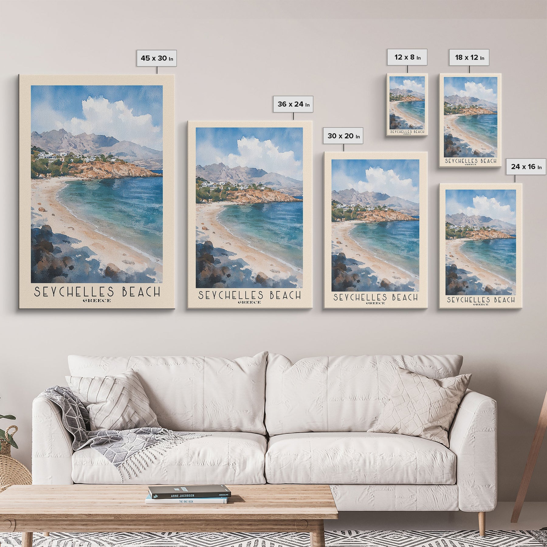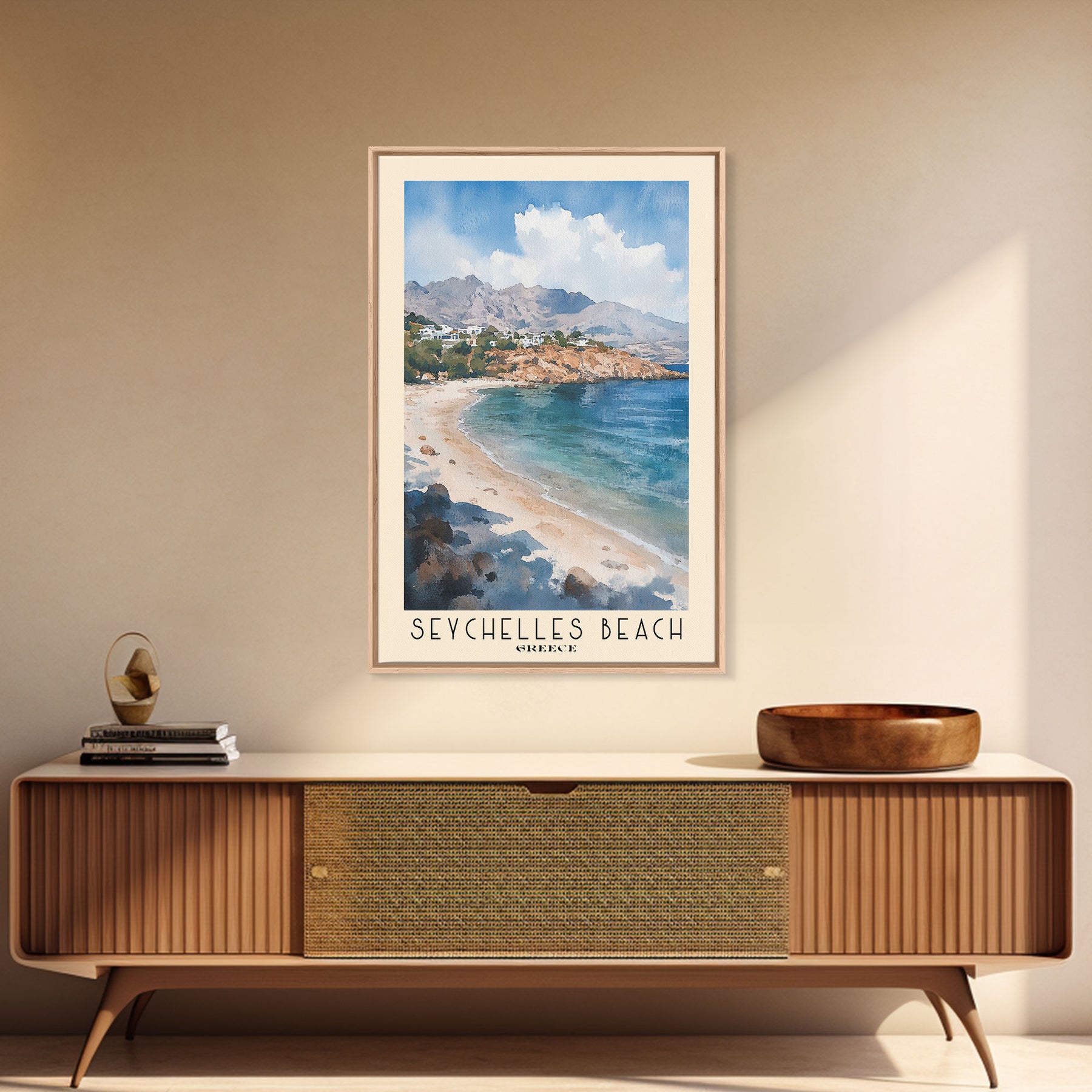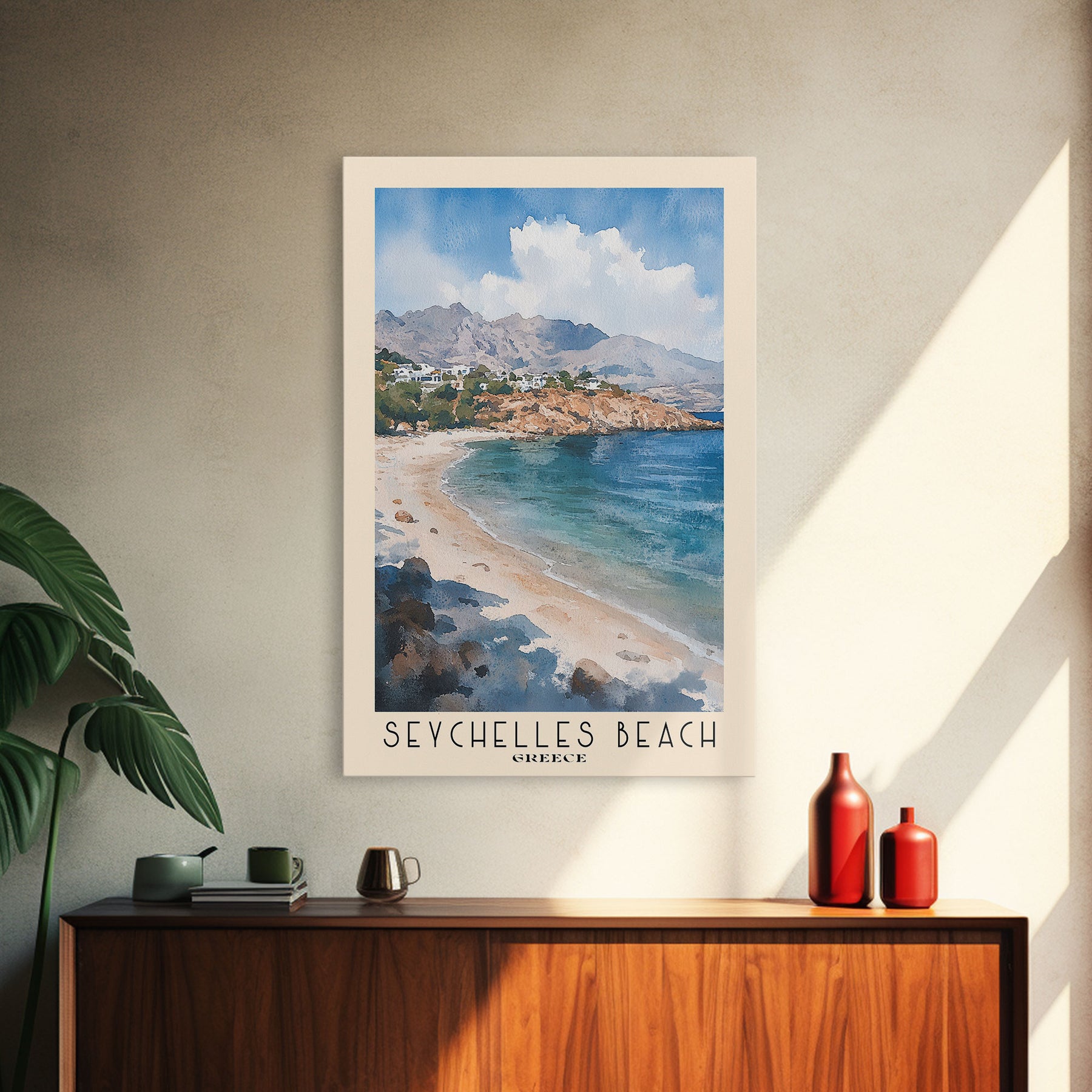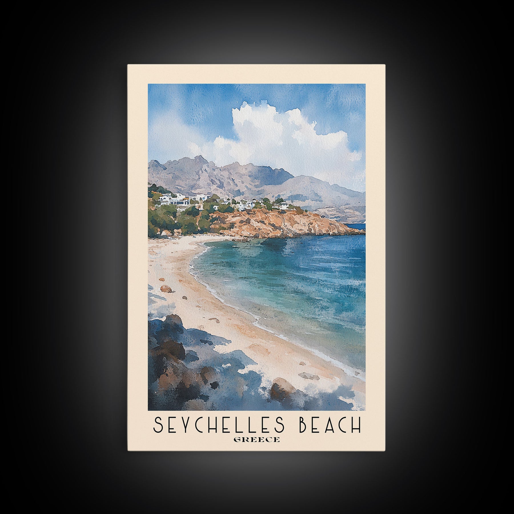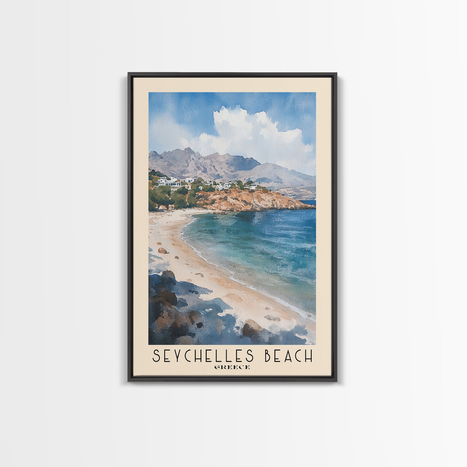 Seychelles Beach, Greece Watercolor Print, Vacation Gift, Greece Wall Art, Beach Painting, Beach Decor, Beach Or Lakehouse Art