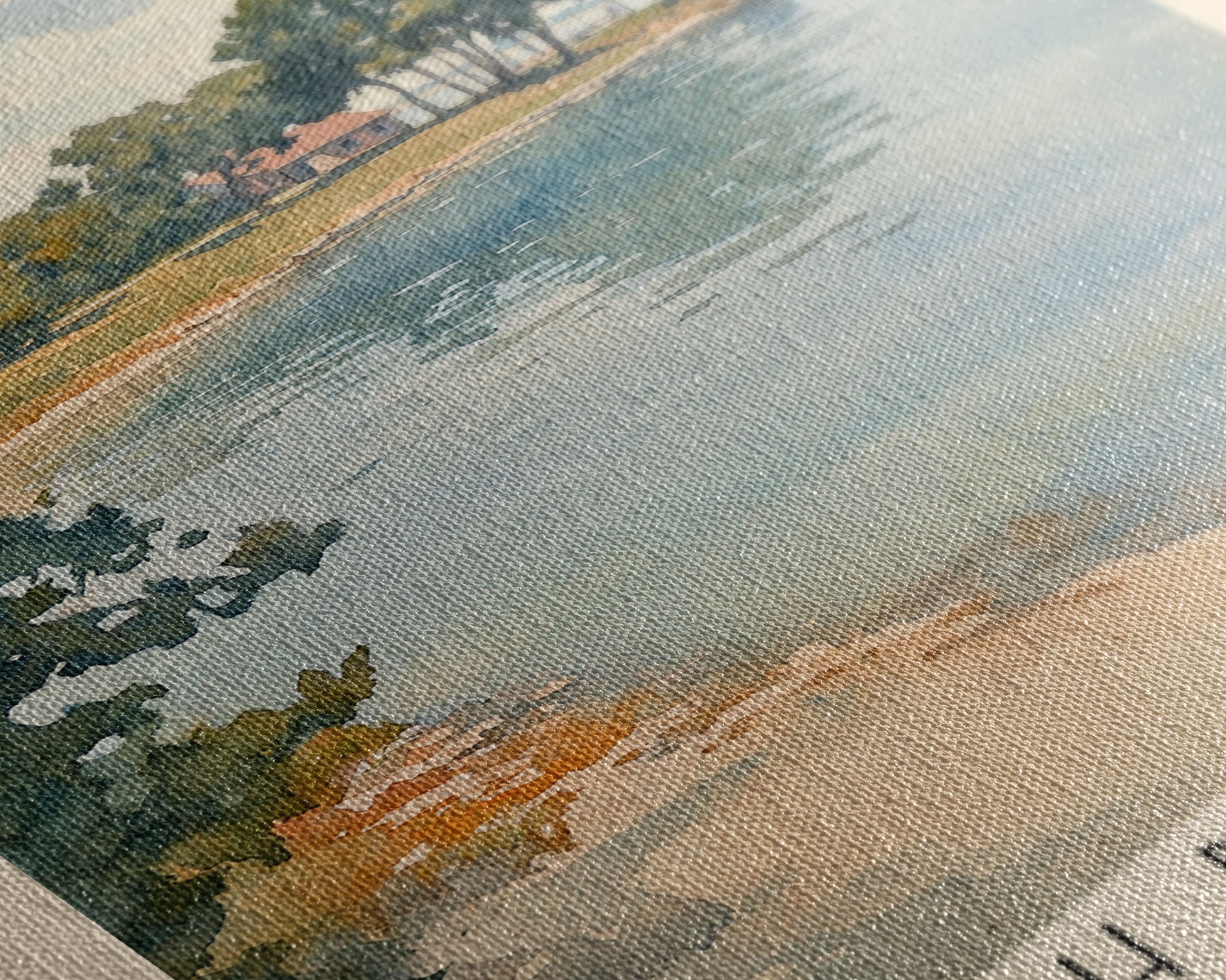Most of our canvases are made in the USA, with the exception of canvases ordered with the light oak unstained frames, and any large canvases (24x48, 30x60, 16x48 and 20x60) ordered WITH a frame. These are temporarily made in and shipped from Europe, while we try to find a more consistent supplier in the USA.