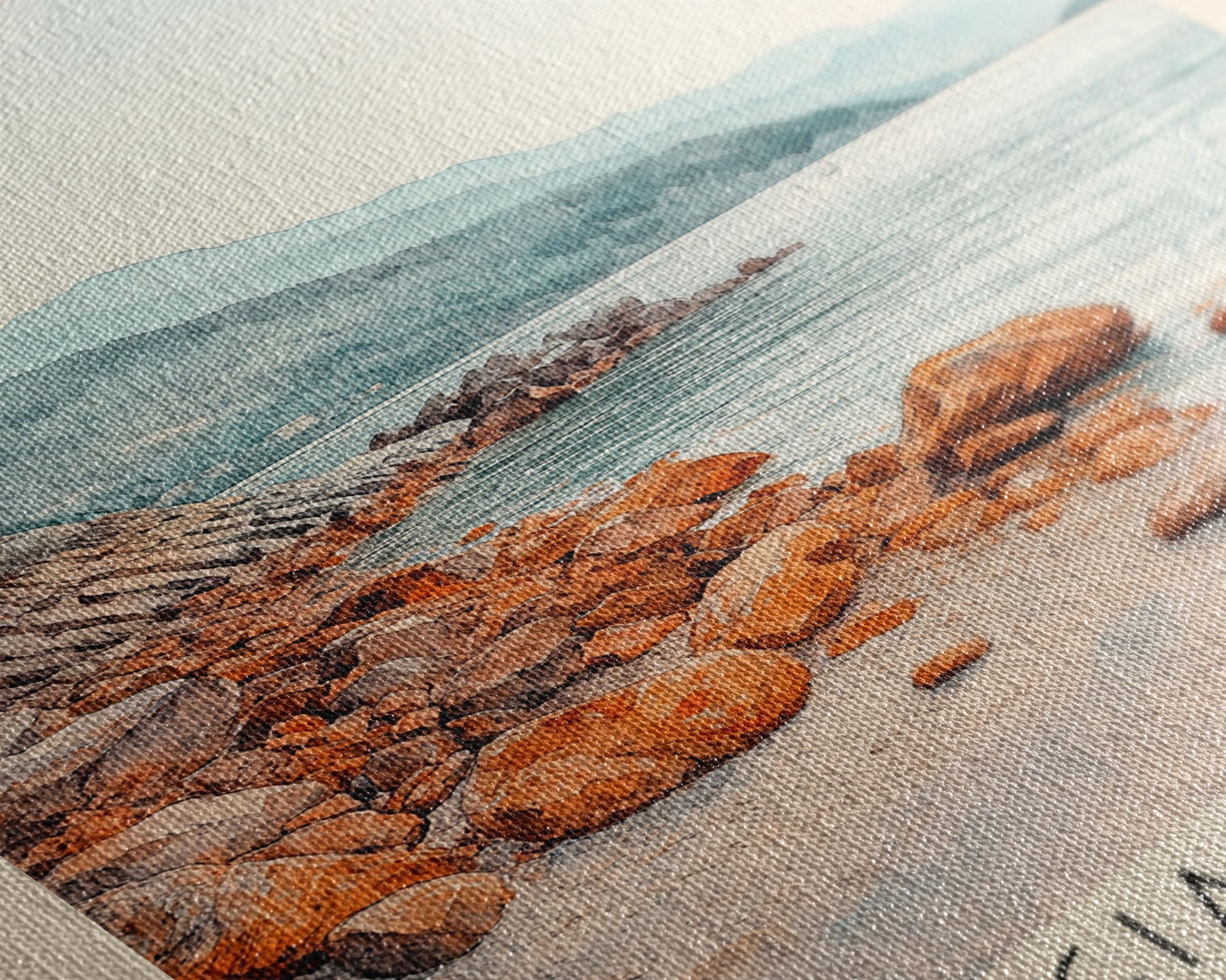 Most of our canvases are made in the USA, with the exception of canvases ordered with the light oak unstained frames, and any large canvases (24x48, 30x60, 16x48 and 20x60) ordered WITH a frame. These are temporarily made in and shipped from Europe, while we try to find a more consistent supplier in the USA.