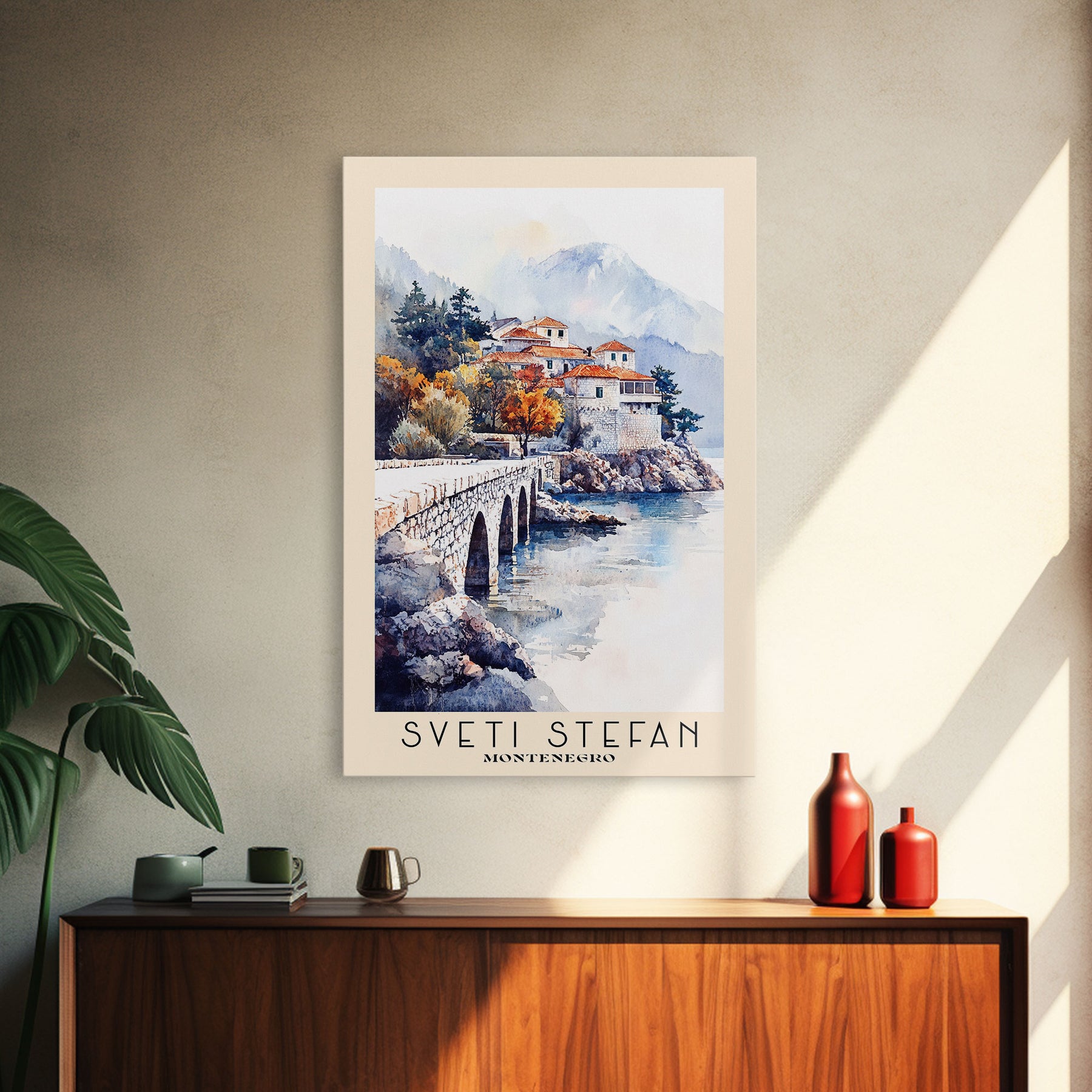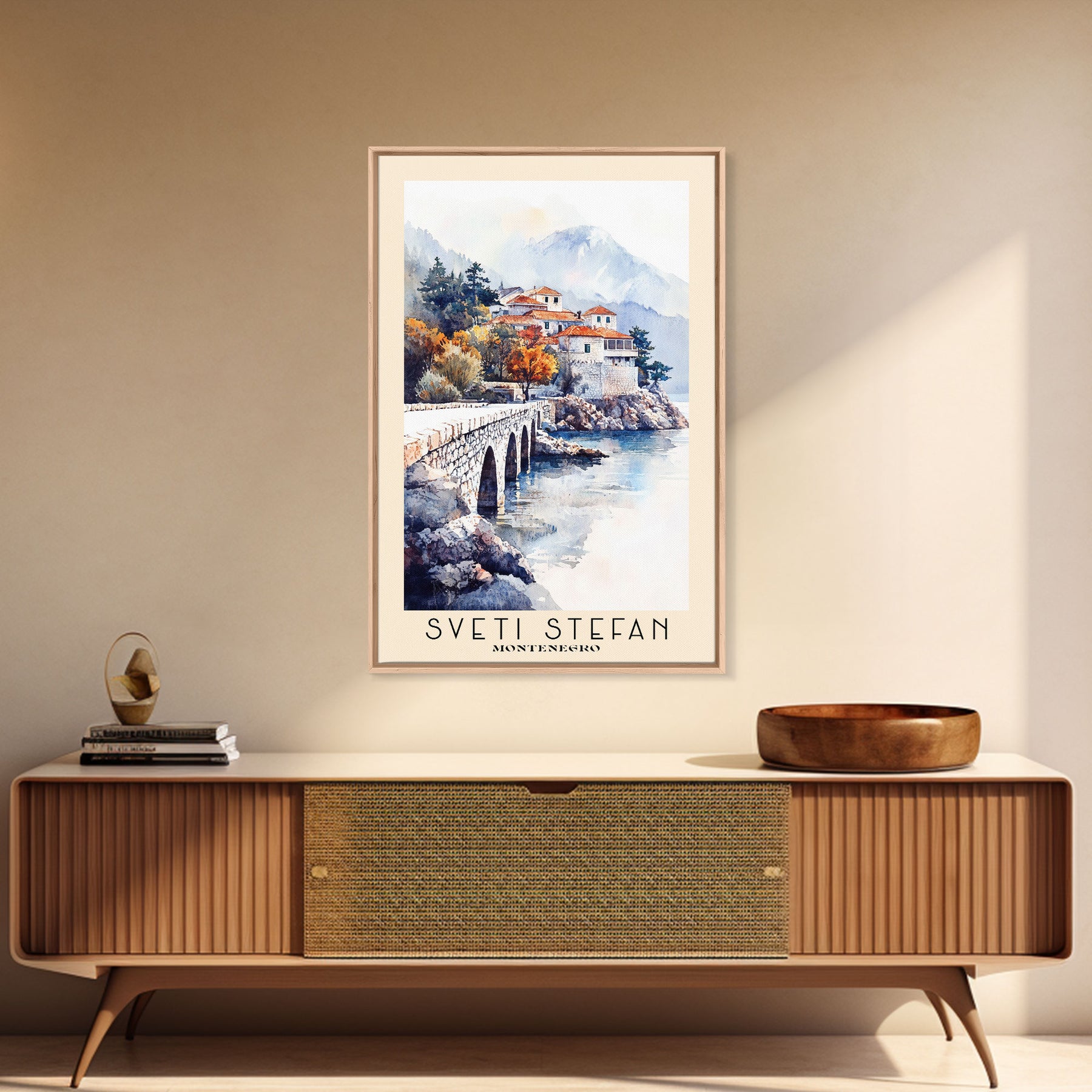 Sveti Stefan, Montenegro Watercolor Print, Vacation Gift, Montenegro Wall Art, Vacation Wall Art, Vacatation Memories, Beach Decor, Beach Or Lakehouse Art