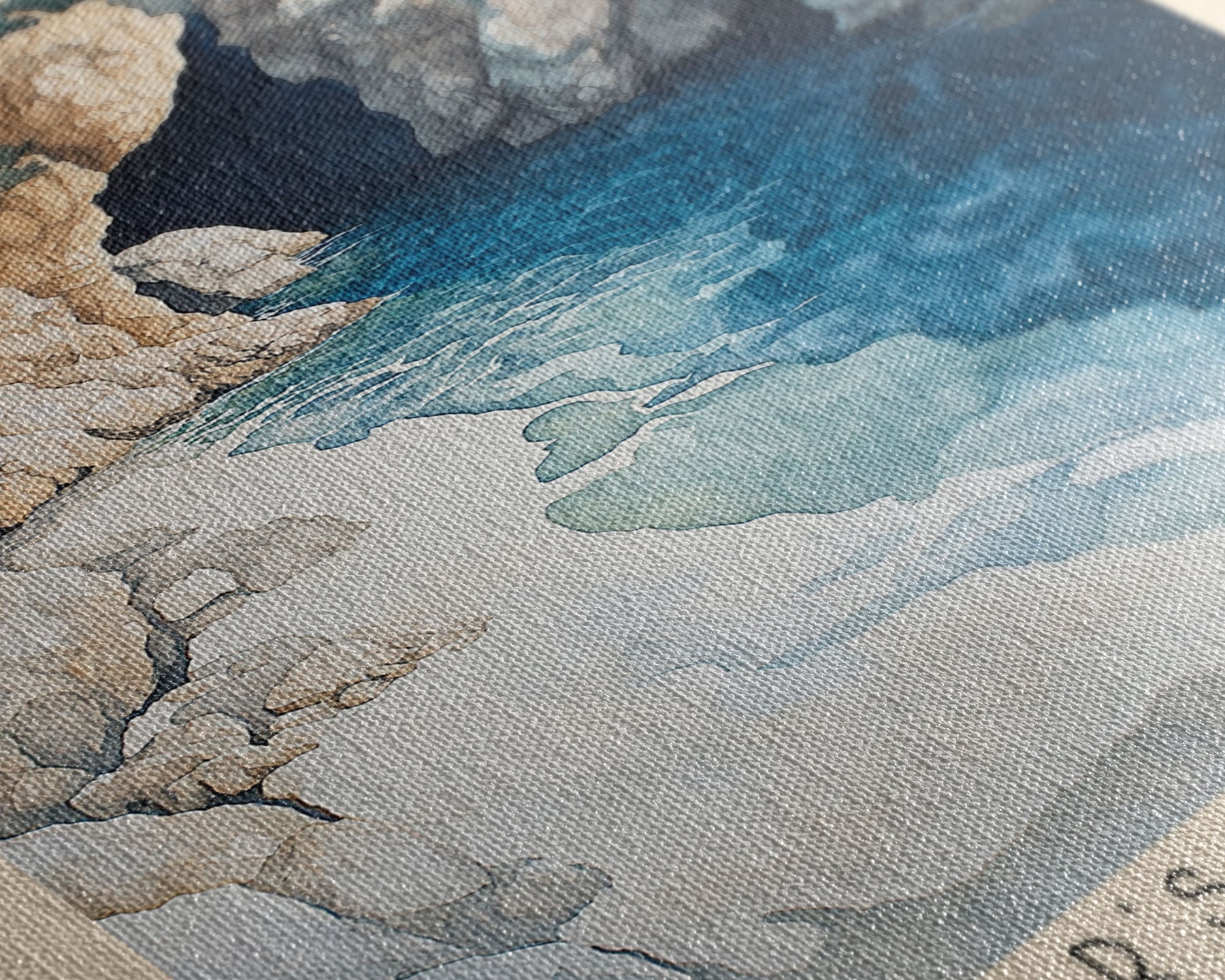 Most of our canvases are made in the USA, with the exception of canvases ordered with the light oak unstained frames, and any large canvases (24x48, 30x60, 16x48 and 20x60) ordered WITH a frame. These are temporarily made in and shipped from Europe, while we try to find a more consistent supplier in the USA.