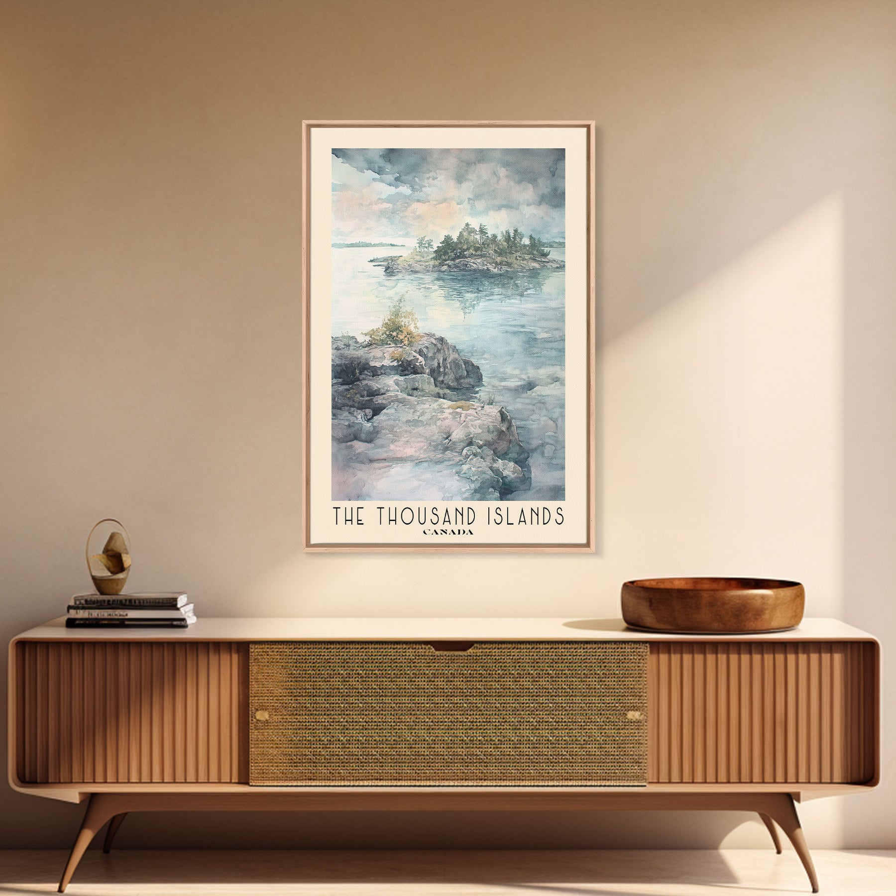 The Thousand Islands, Canada Watercolor Print, Vacation Gift, Canada Wall Art, Beach Painting, Beach Decor, Large Wall Art, Wood Frame Art