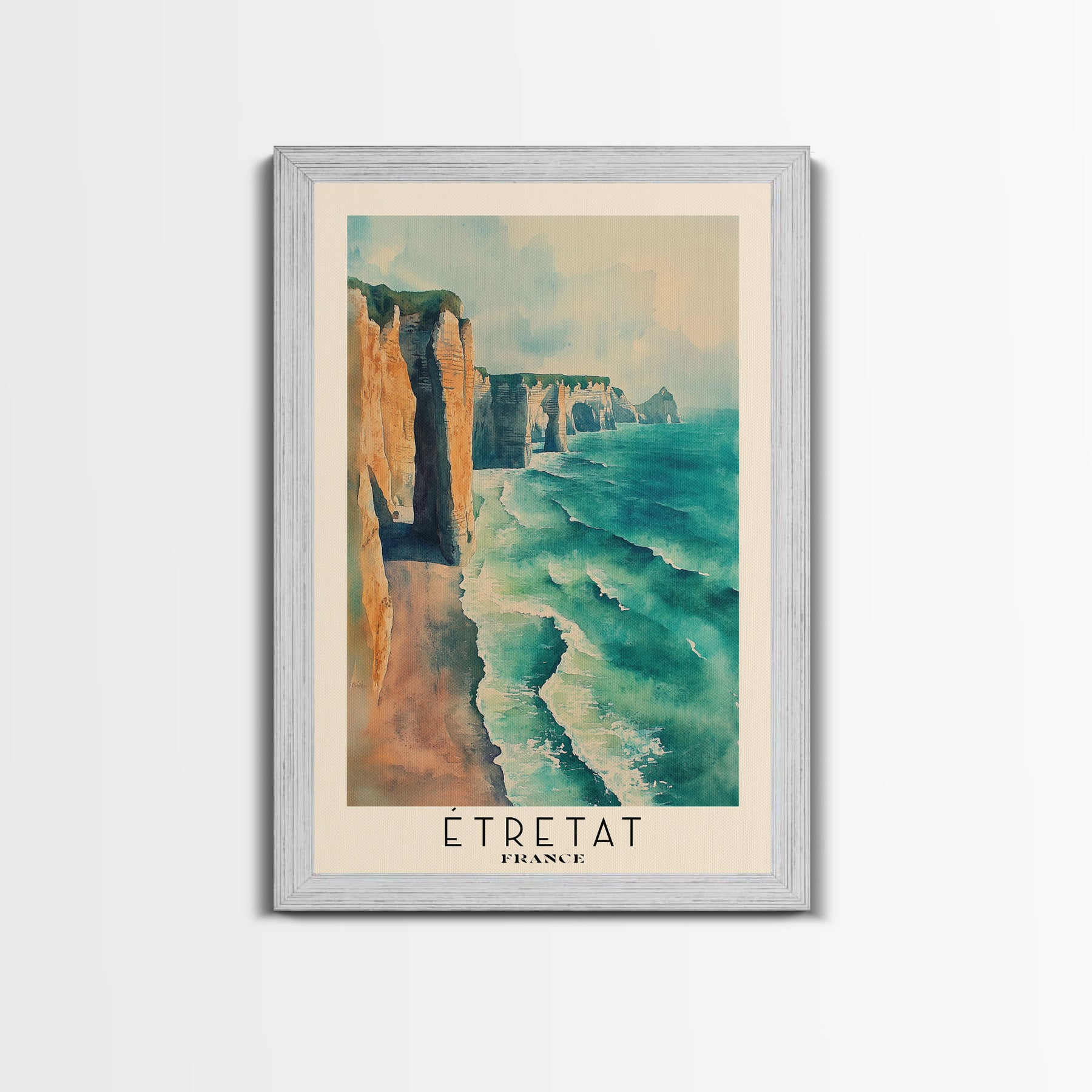 Étretat, France Watercolor Print, Vacation Gift, France Wall Art, Beach Painting, Beach Decor, Large Wall Art, Wood Frame Art