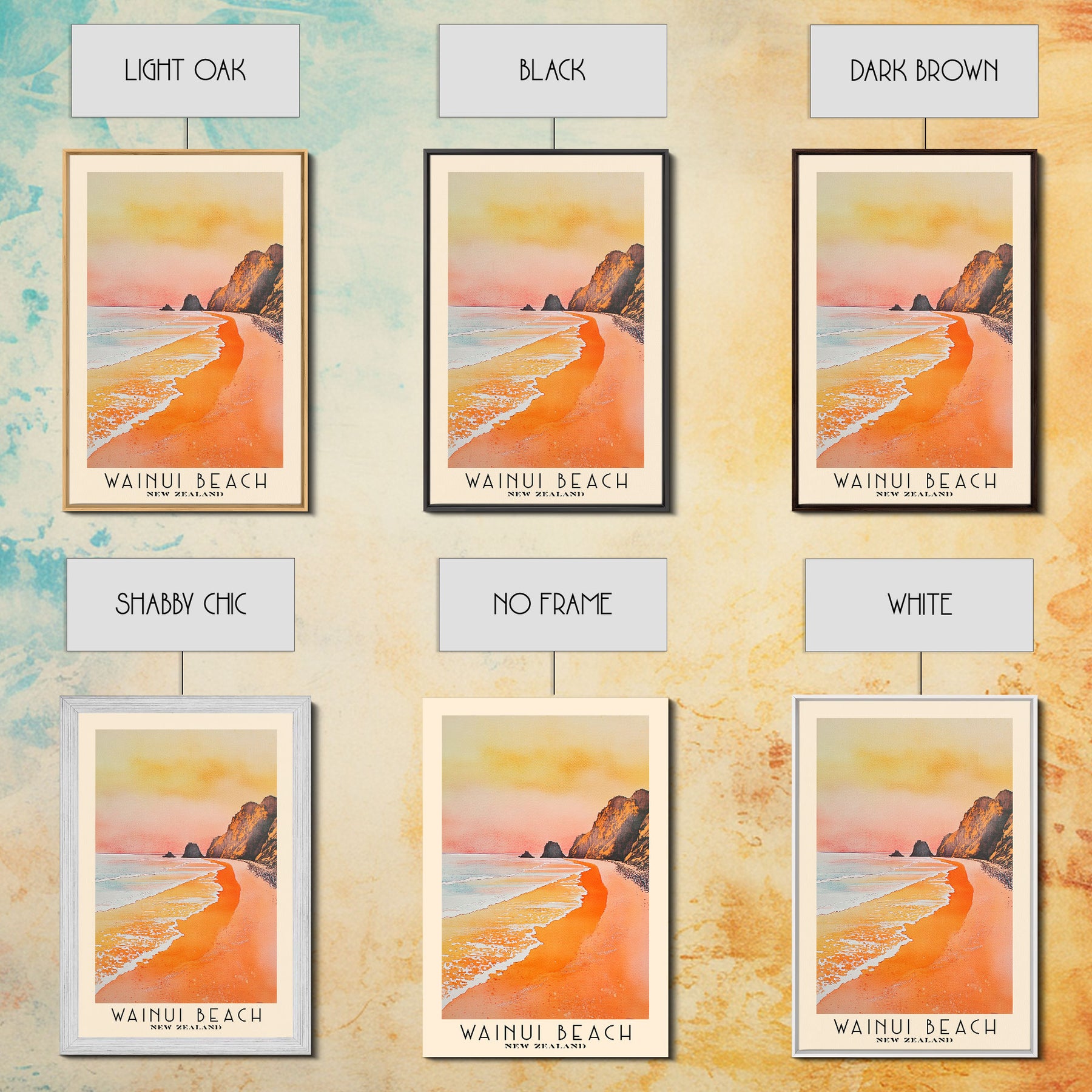 Wainui Beach, New Zealand Watercolor Print, Vacation Gift, New Zealand Wall Art, Beach Painting, Beach Decor, Large Wall Art, Wood Frame Art