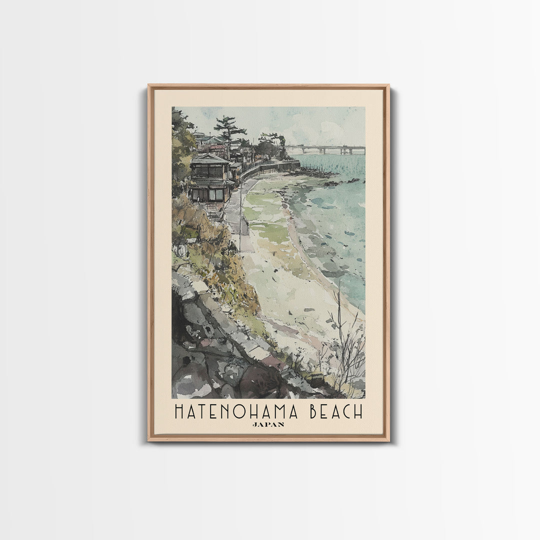 Hatenohama Beach, Japan Watercolor Print, Vacation Gift, Japan Wall Art, Beach Painting, Beach Decor, Large Wall Art, Wood Frame Art