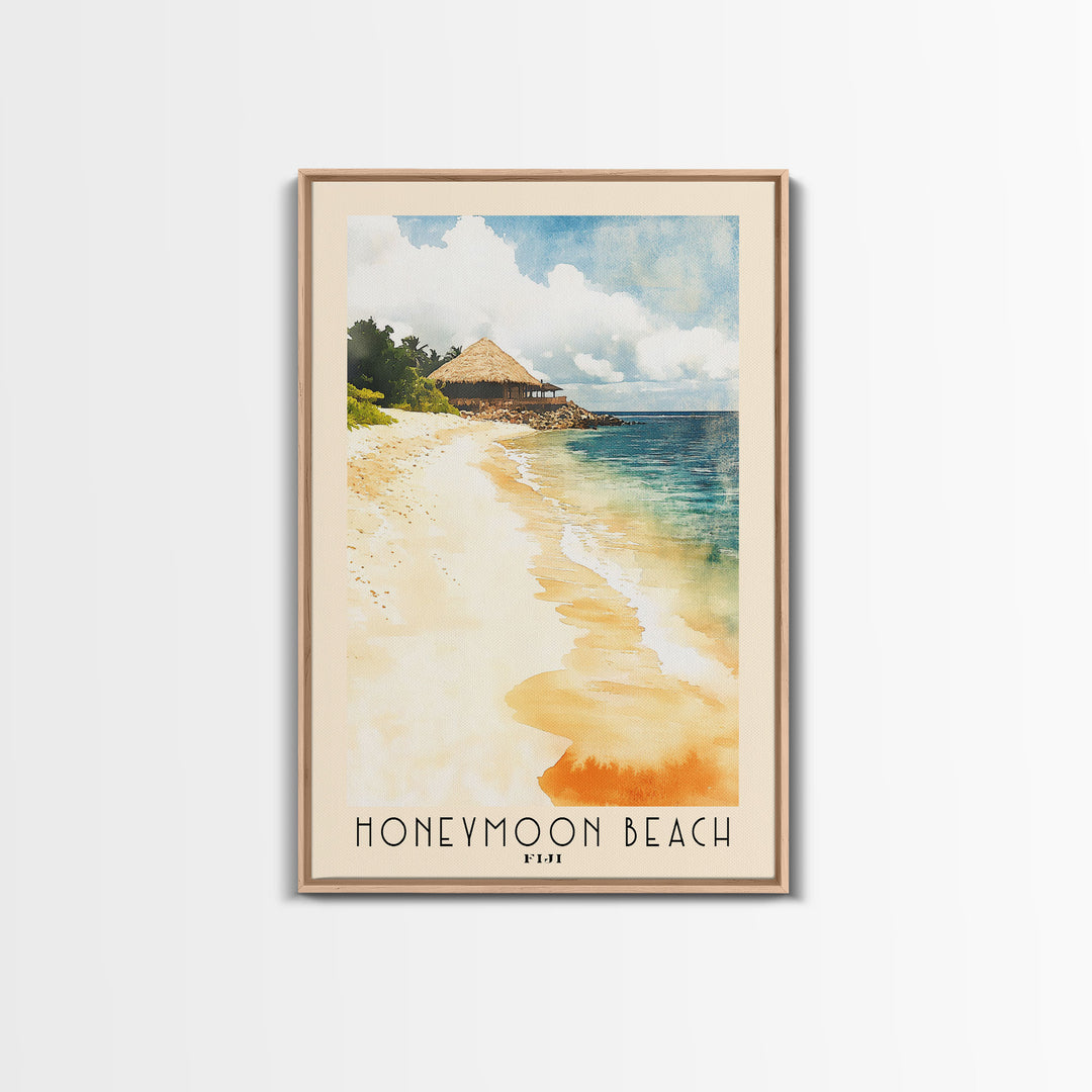 Honeymoon Beach, Fiji Watercolor Print, Vacation Gift, Fiji Wall Art, Beach Painting, Beach Decor, Large Wall Art, Wood Frame Art