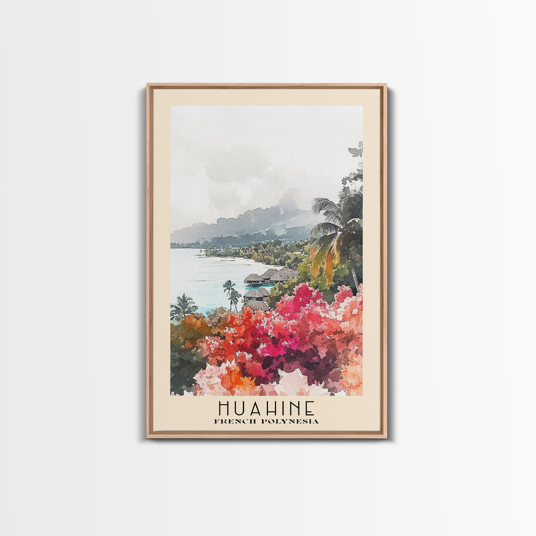 Huahine, French Polynesia Watercolor Print, Vacation Gift, French Polynesia Wall Art, Beach Painting, Beach Decor, Large Wall Art, Wood Frame Art
