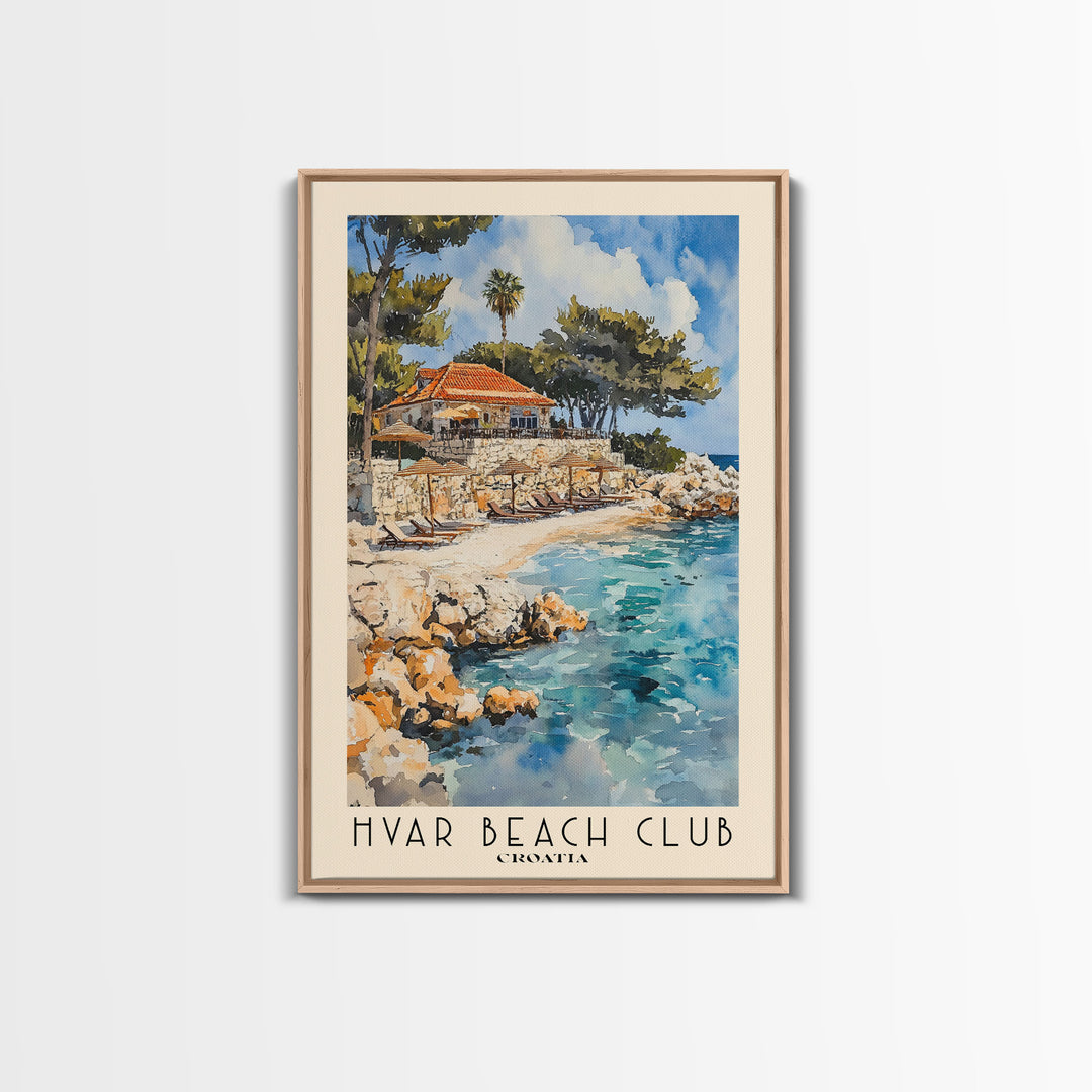 Hvar Beach Club, Croatia Watercolor Print, Vacation Gift, Croatia Wall Art, Beach Painting, Beach Decor, Large Wall Art, Wood Frame Art
