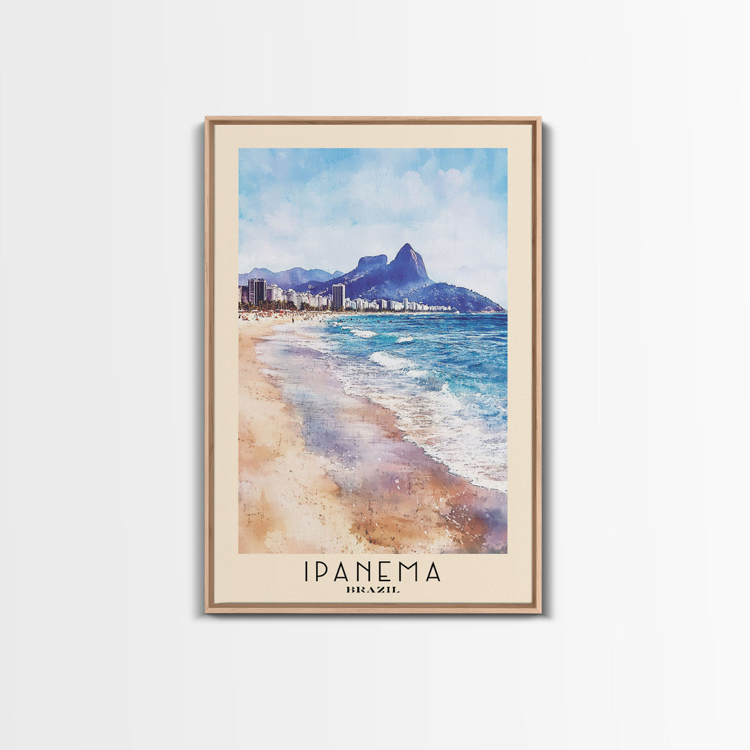 Ipanema, Brazil Watercolor Print, Vacation Gift, Brazil Wall Art, Beach Painting, Beach Decor, Large Wall Art, Wood Frame Art