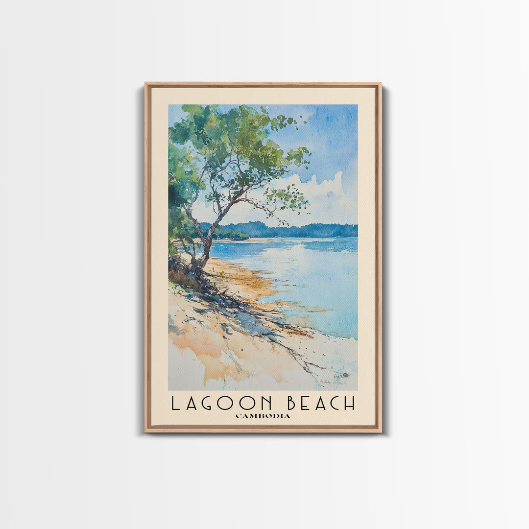 Lagoon Beach, Cambodia Watercolor Print, Vacation Gift, Cambodia Wall Art, Beach Painting, Beach Decor, Large Wall Art, Wood Frame Art