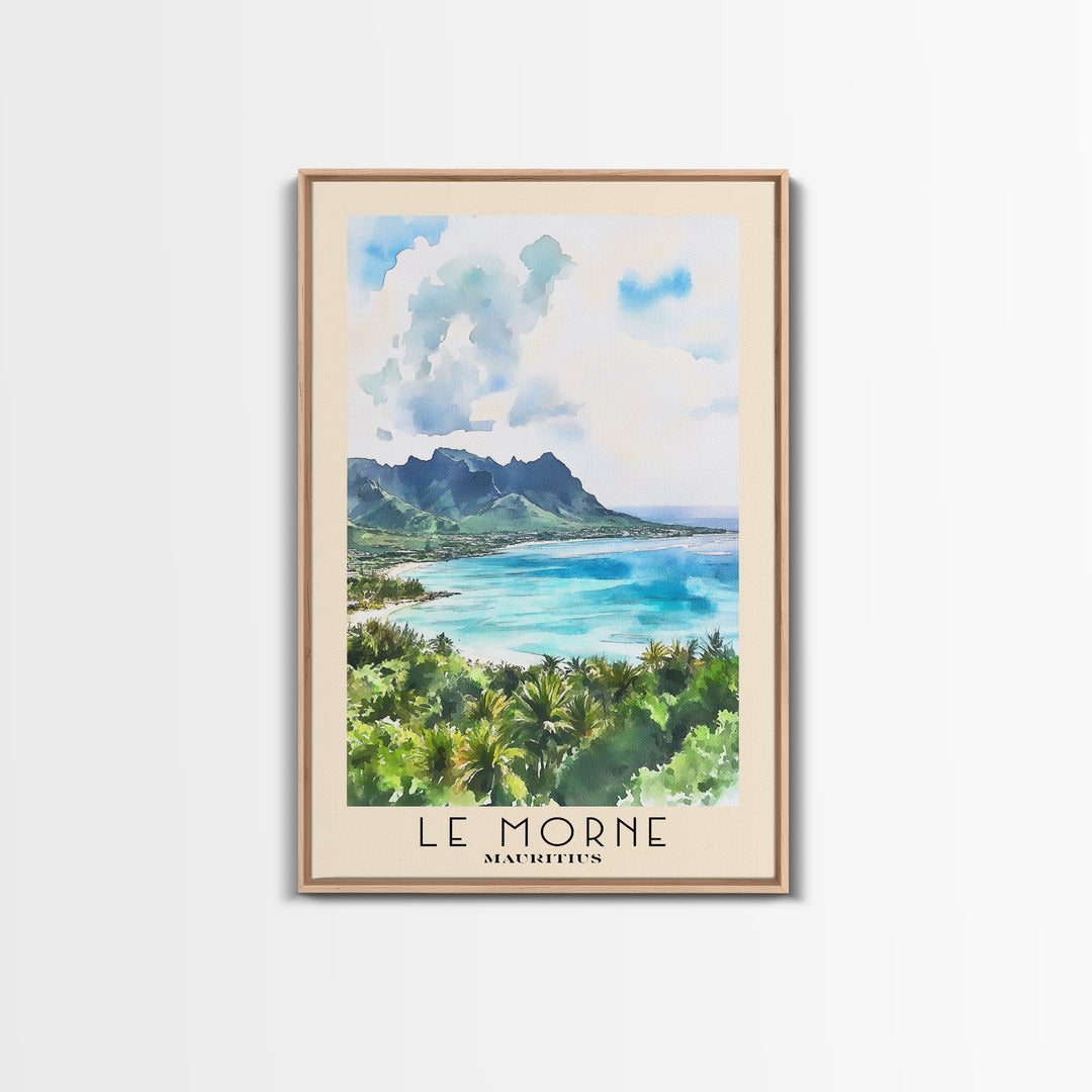 Le Morne, Mauritius Watercolor Print, Vacation Gift, Mauritius Wall Art, Beach Painting, Beach Decor, Large Wall Art, Wood Frame Art