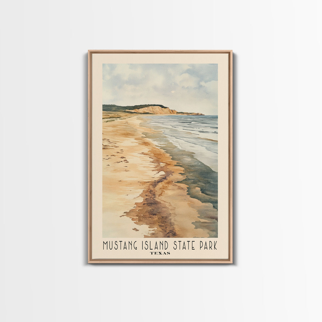 Mustang Island, Texas Watercolor Beach Print, Vacation Gift, Texas Wall Art, Framed Canvas Print, Framed Beach Painting