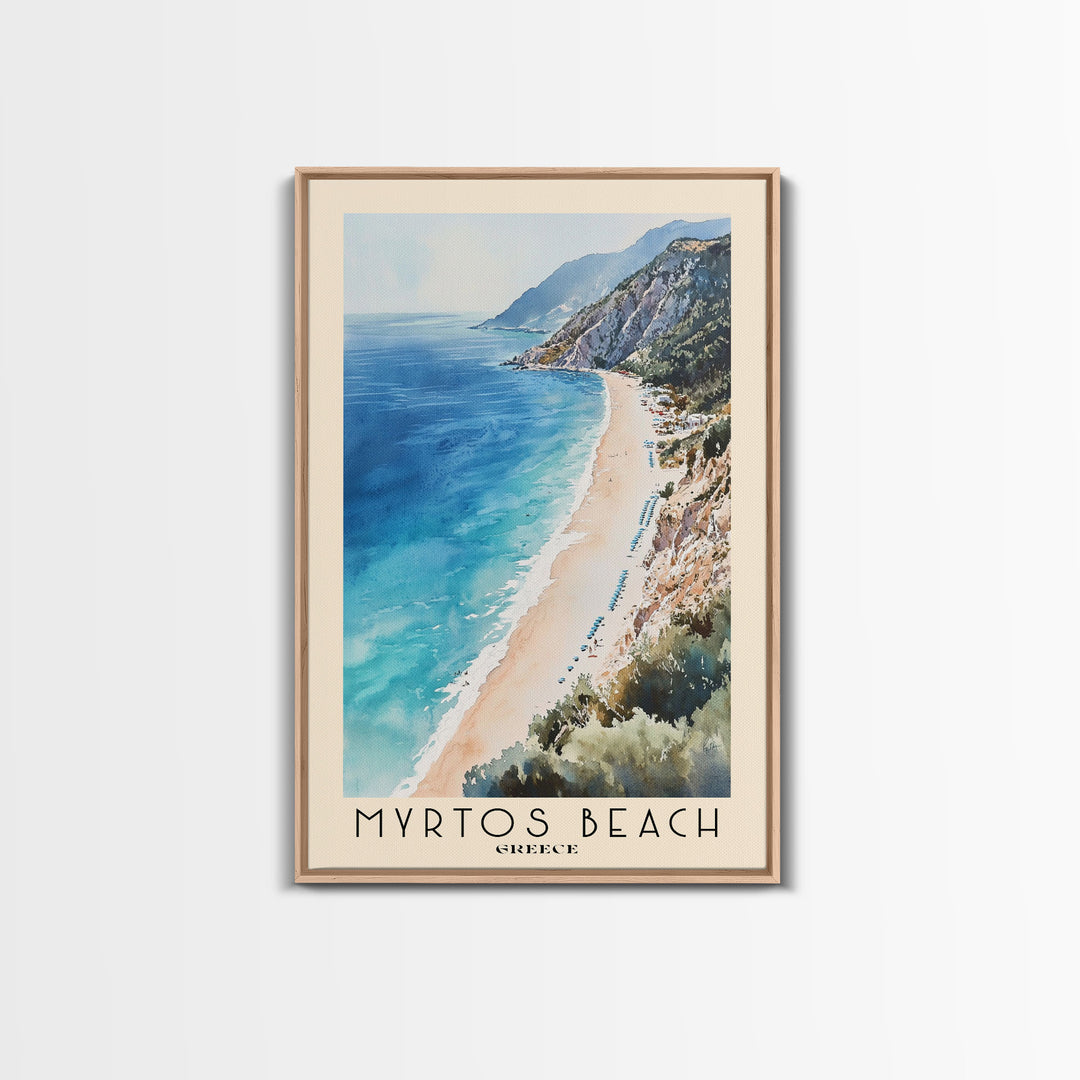 Myrtos Beach, Greece Watercolor Print, Vacation Gift, Greece Wall Art, Beach Painting, Beach Decor, Large Wall Art, Wood Frame Art