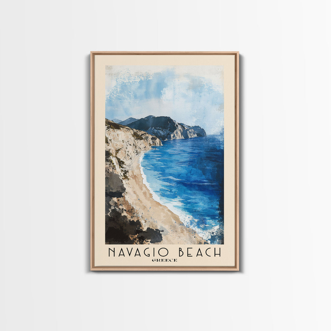 Naxos, Greece Watercolor Beach Print, Vacation Gift, Greece Wall Art, Framed Canvas Print, Framed Beach Painting