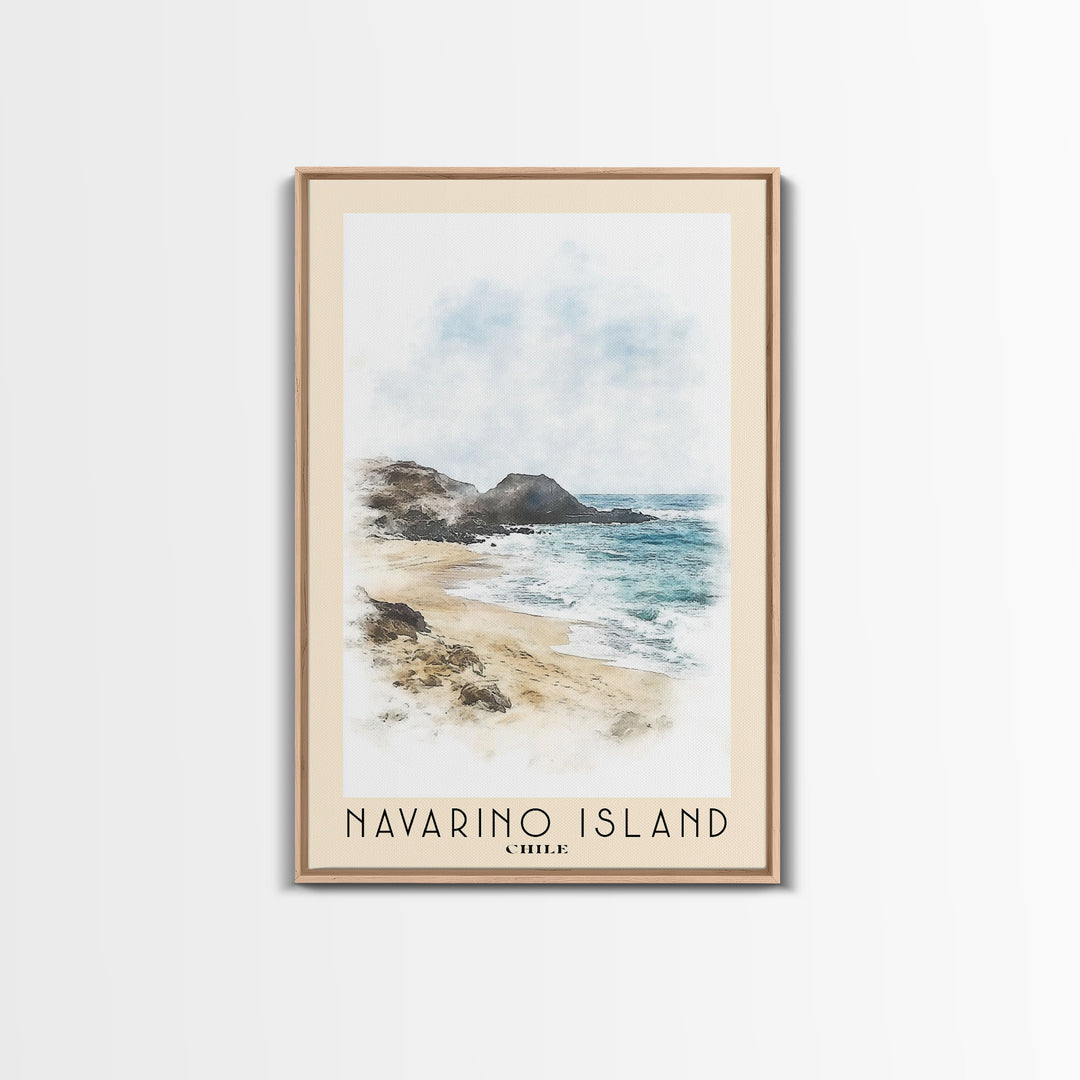 Navarino Island, Chile Watercolor Print, Vacation Gift, Chile Wall Art, Beach Painting, Beach Decor, Large Wall Art, Wood Frame Art