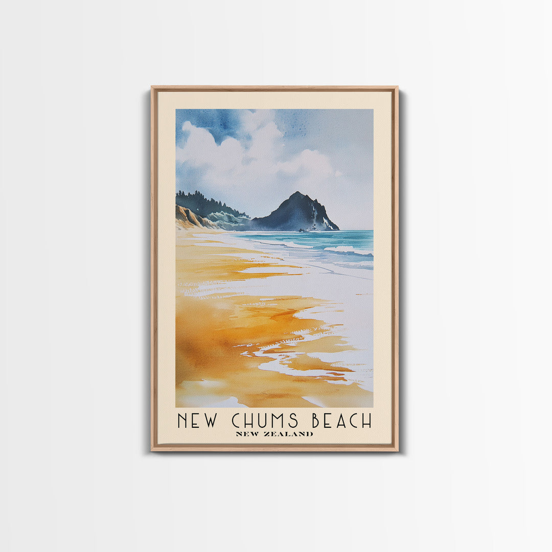 New Chums Beach, New Zealand Watercolor Print, Vacation Gift, New Zealand Wall Art, Beach Painting, Beach Decor, Large Wall Art, Wood Frame Art