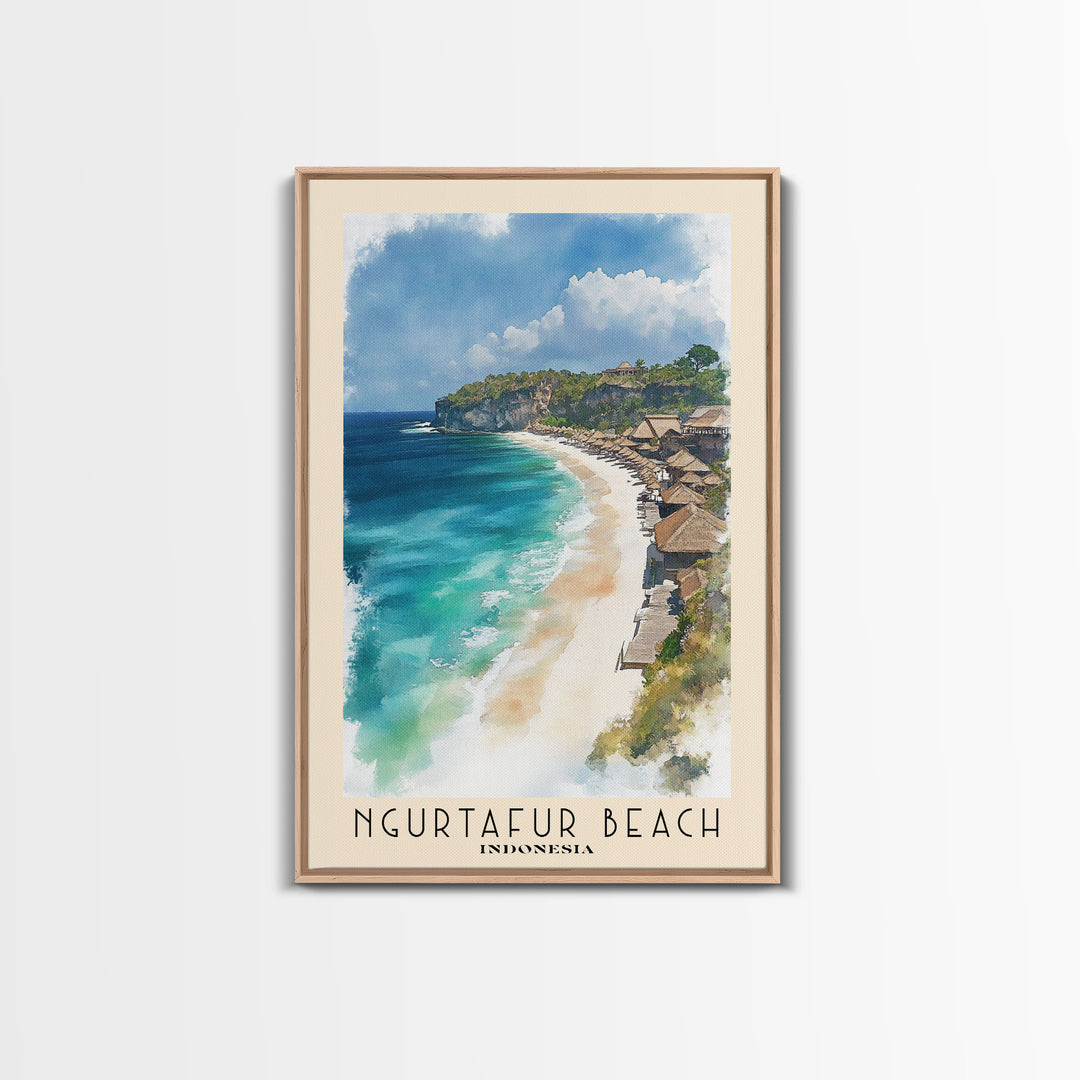 Ngurtafur Beach, Indonesia Watercolor Beach Print, Vacation Gift, Indonesia Wall Art, Framed Canvas Print, Framed Beach Painting