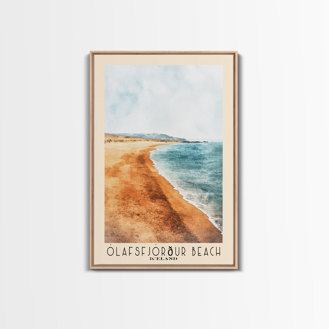 Ólafsfjörður Beach, Iceland Watercolor Print, Vacation Gift, Iceland Wall Art, Beach Painting, Beach Decor, Large Wall Art, Wood Frame Art