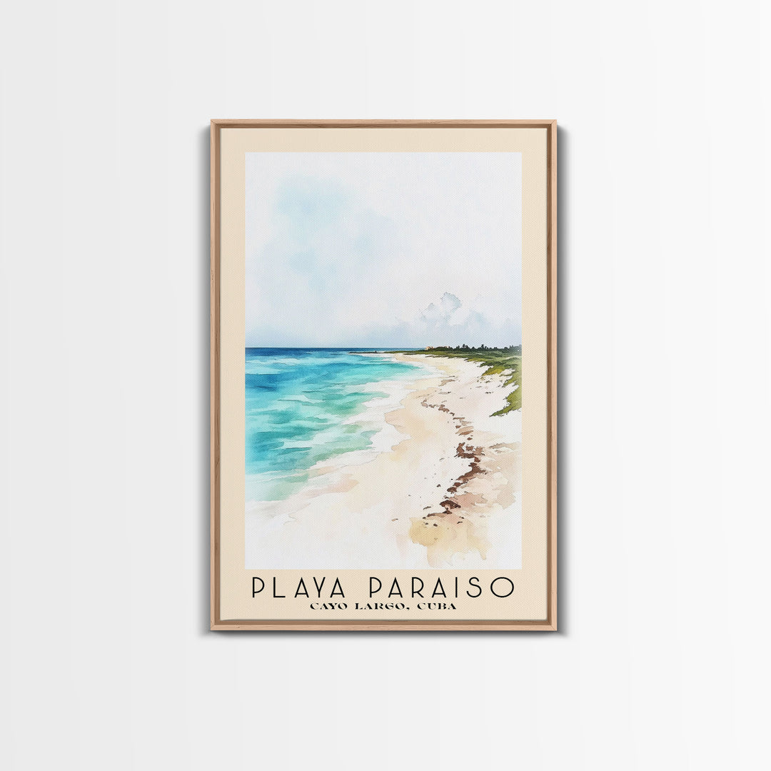 Playa Pariquillo, Cuba Watercolor Print, Vacation Gift, Cuba Wall Art, Beach Painting, Beach Decor, Large Wall Art, Wood Frame Art