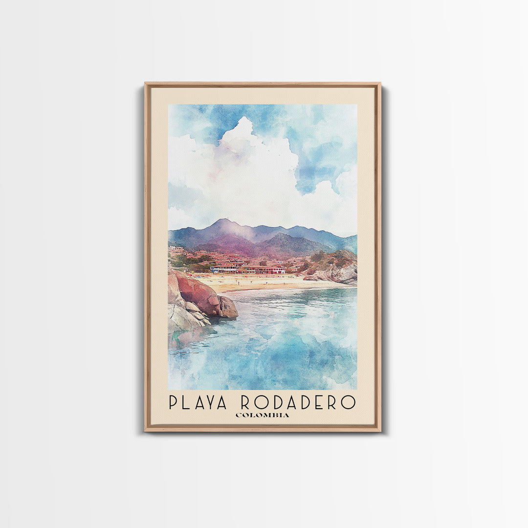 Playa de Castillo Grande, Colombia Watercolor Print, Vacation Gift, Colombia Wall Art, Beach Painting, Beach Decor, Large Wall Art, Wood Frame Art