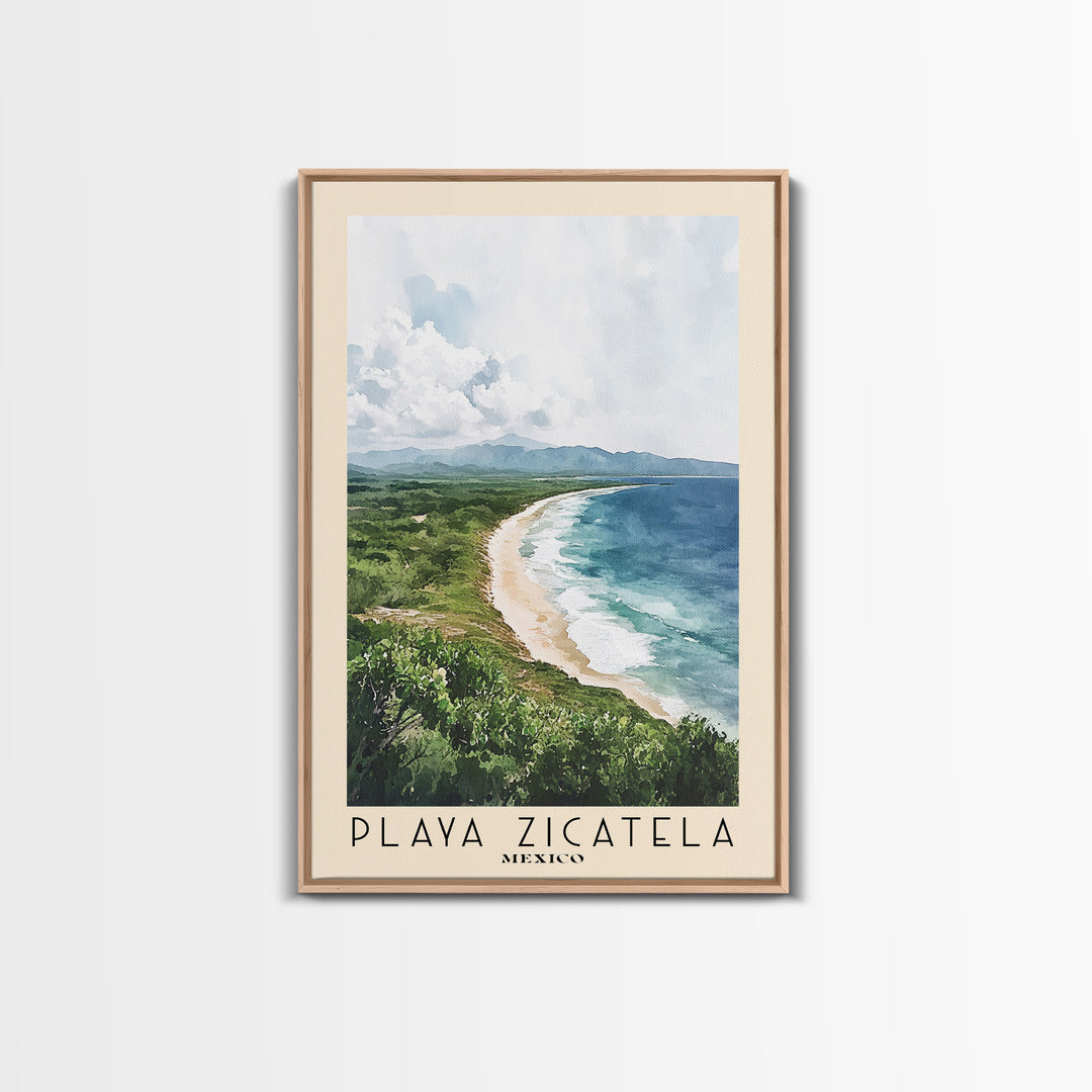 Playa del Amor, Mexico Watercolor Beach Print, Vacation Gift, Mexico Wall Art, Framed Canvas Print, Framed Beach Painting