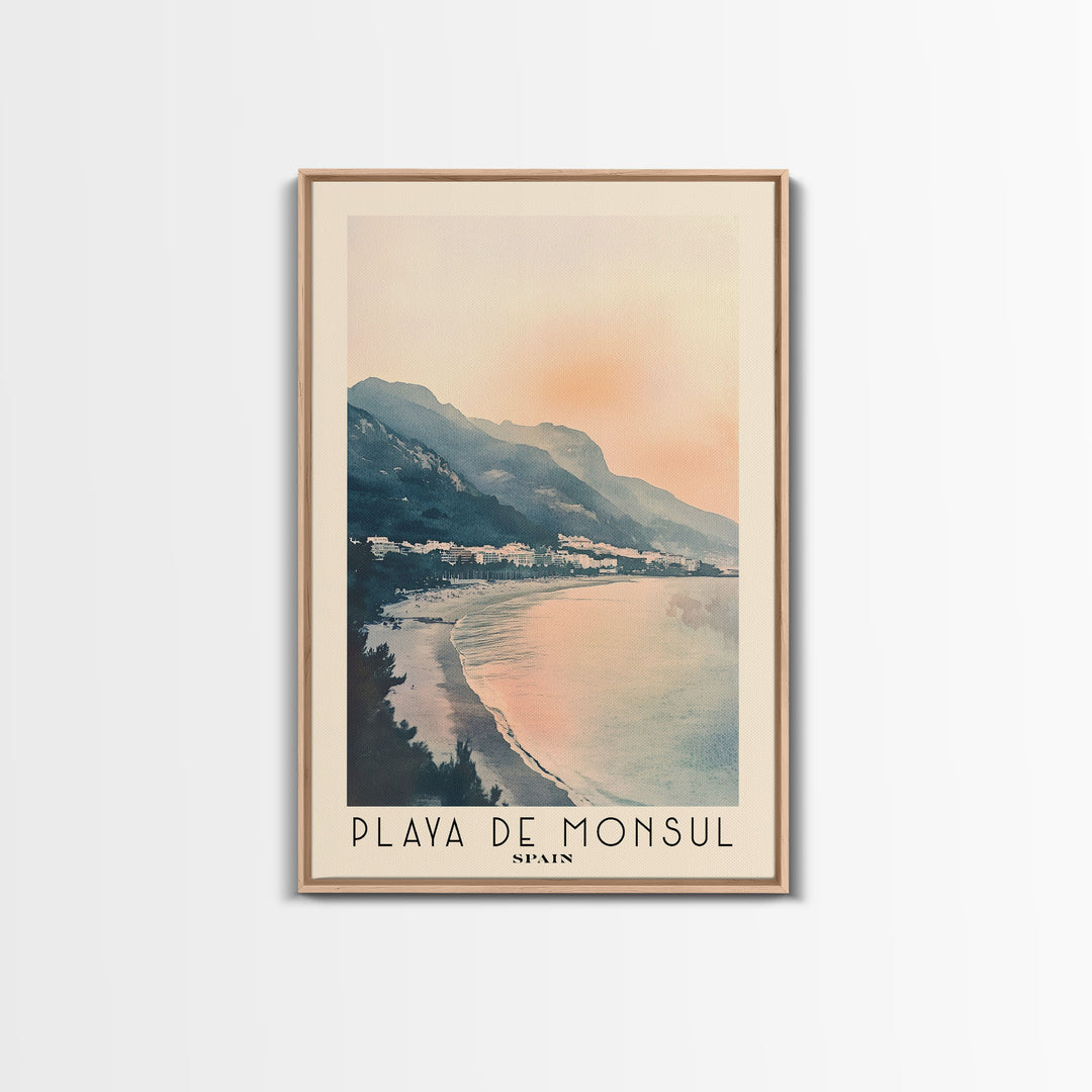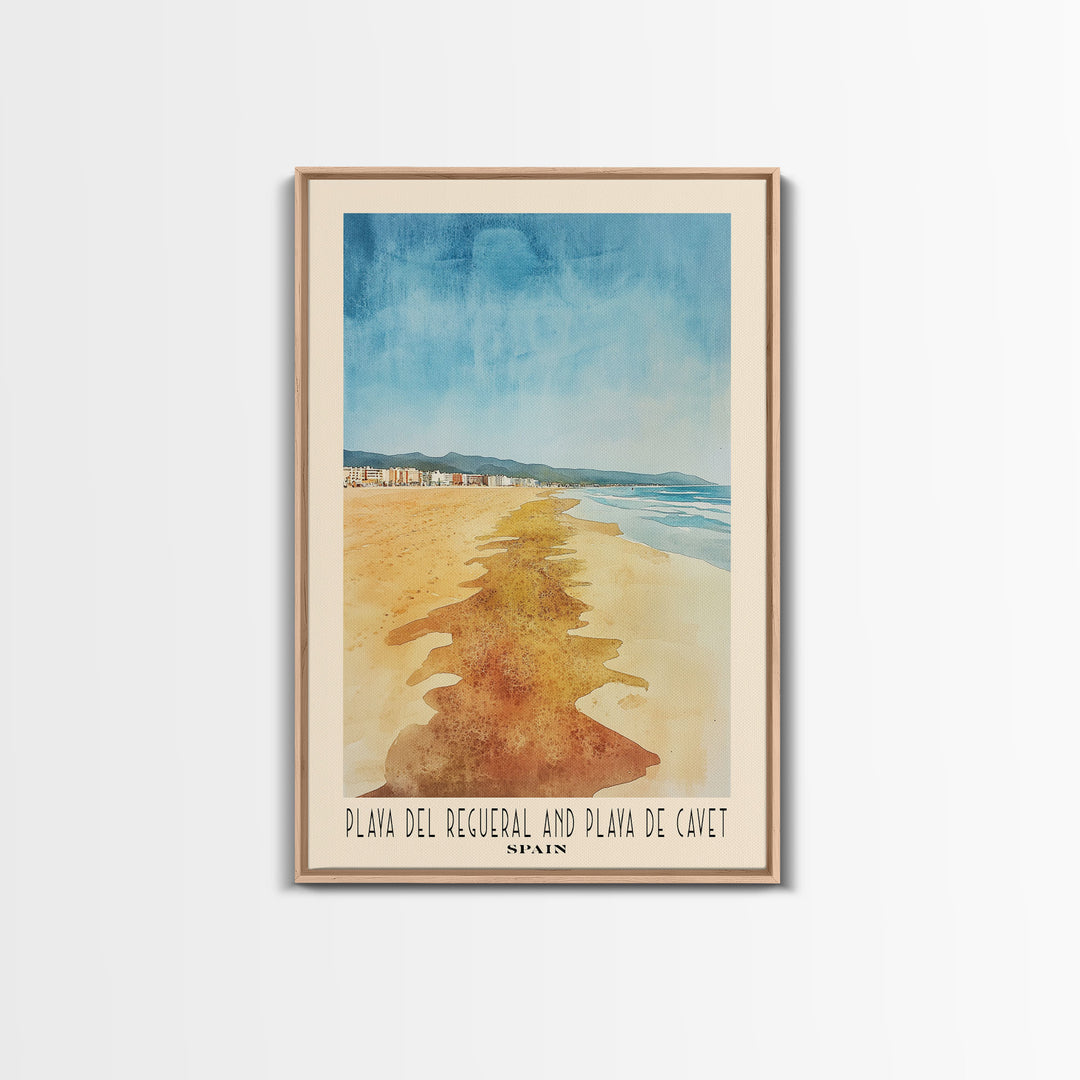 Playa de Gandía, Spain Watercolor Beach Print, Vacation Gift, Spain Wall Art, Framed Canvas Print, Framed Beach Painting