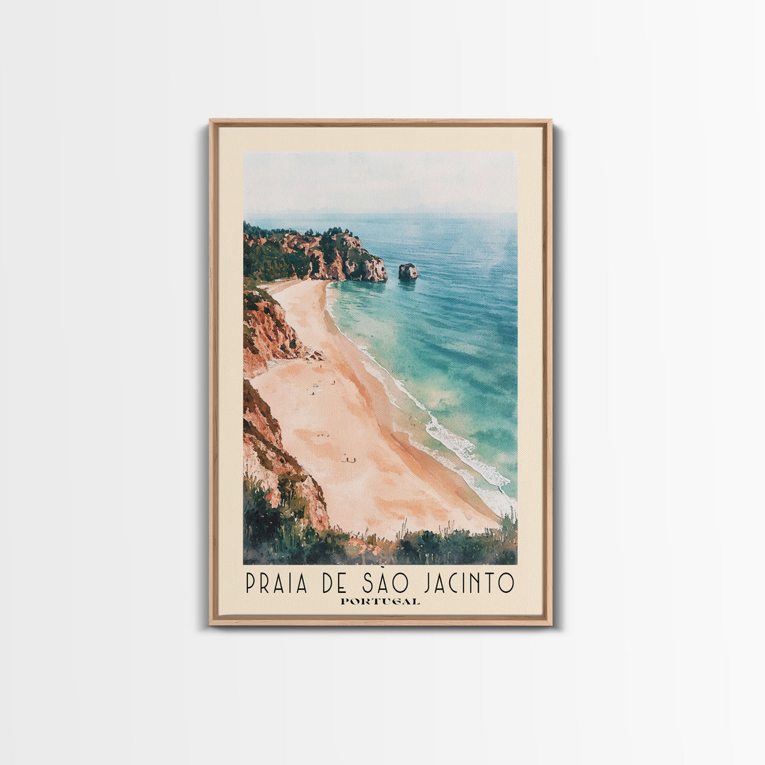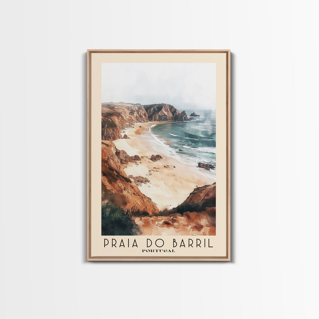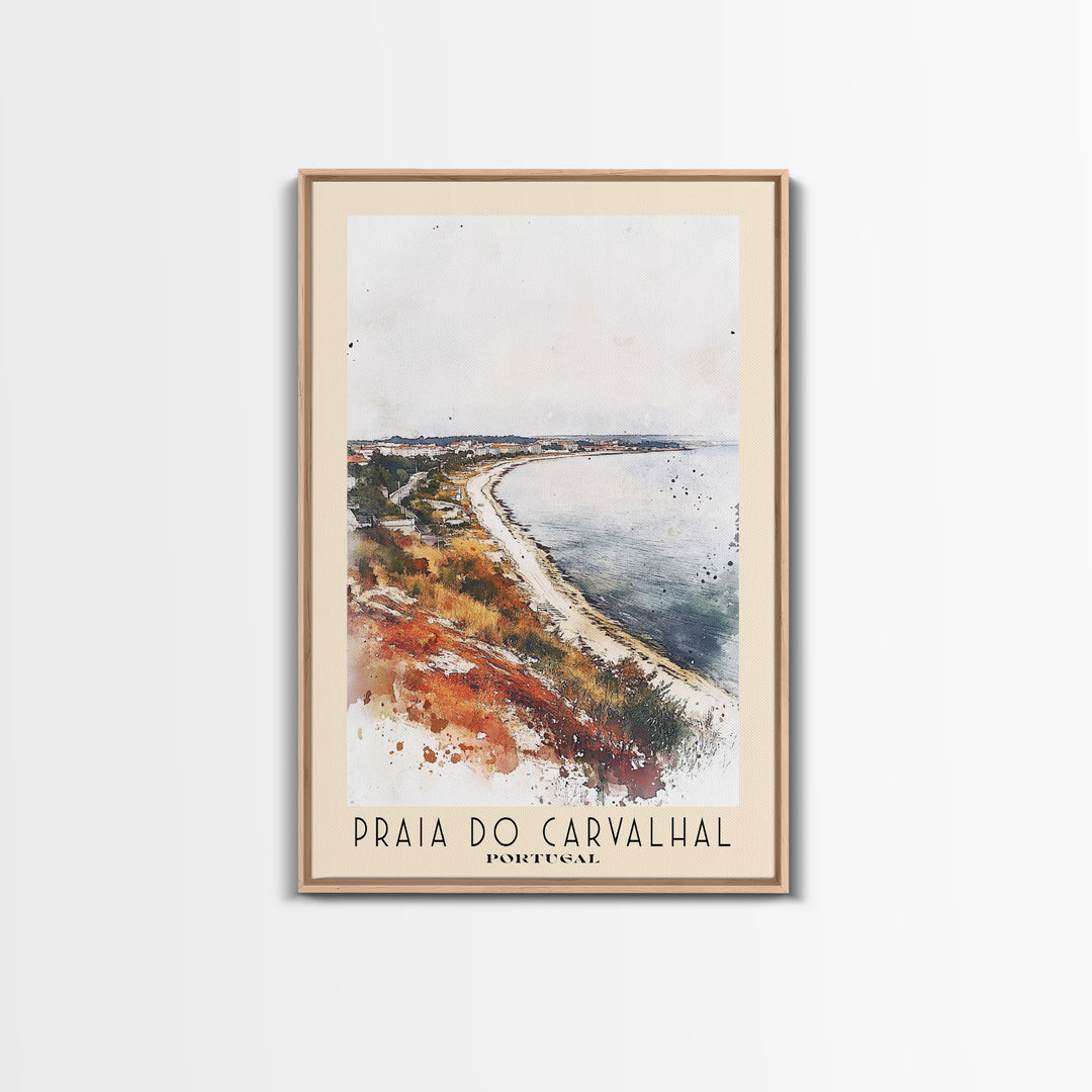 Praia do Carvalho, Portugal Watercolor Beach Print, Vacation Gift, Portugal Wall Art, Framed Canvas Print, Framed Beach Painting