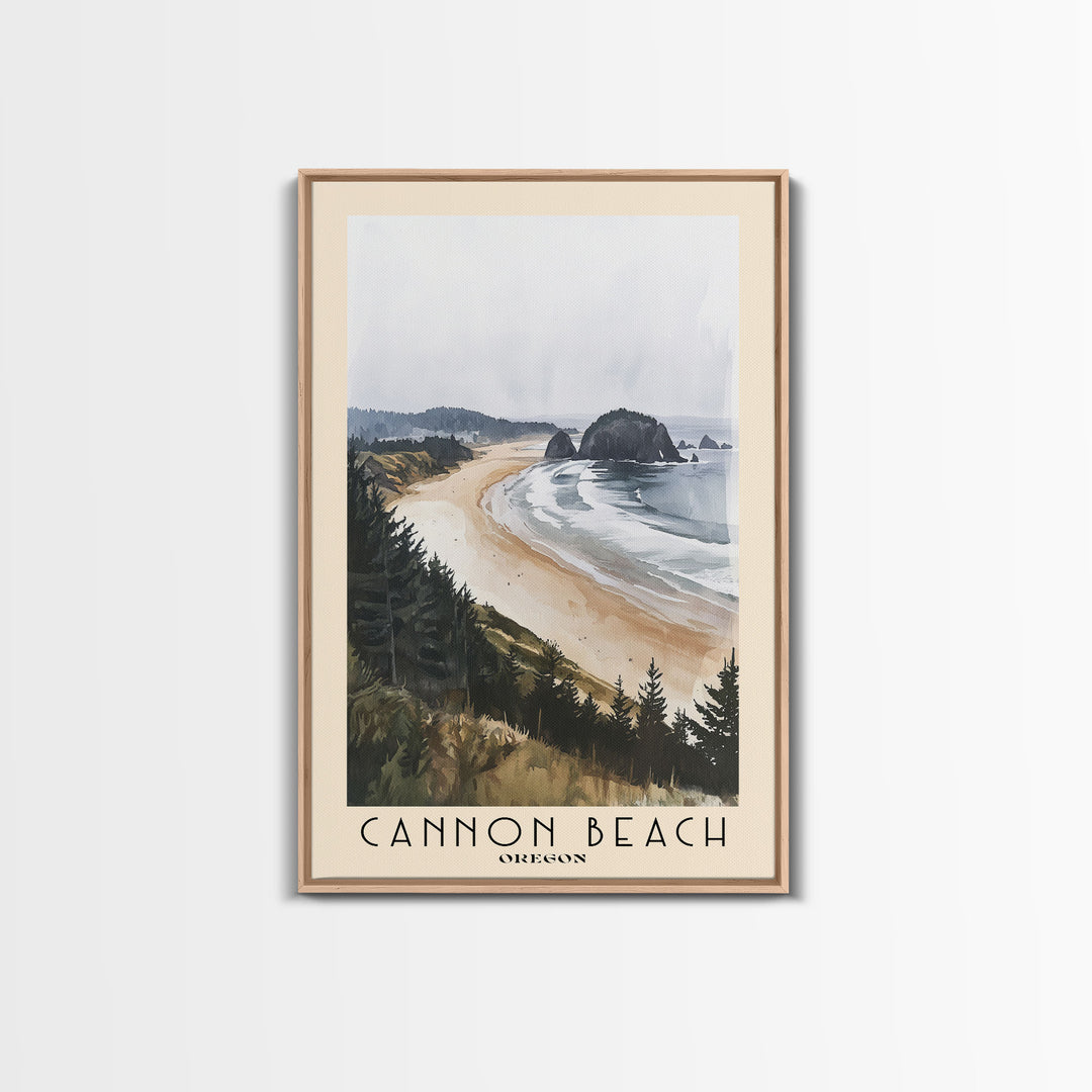 Cannon Beach, Oregon Watercolor Beach Print, Vacation Gift, Oregon Wall Art, Framed Canvas Print, Framed Beach Painting