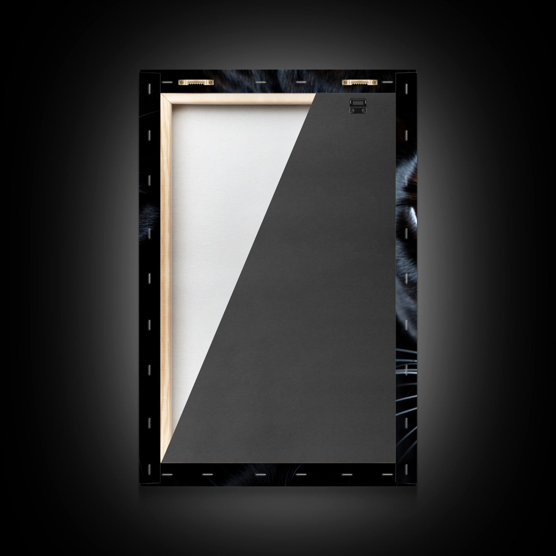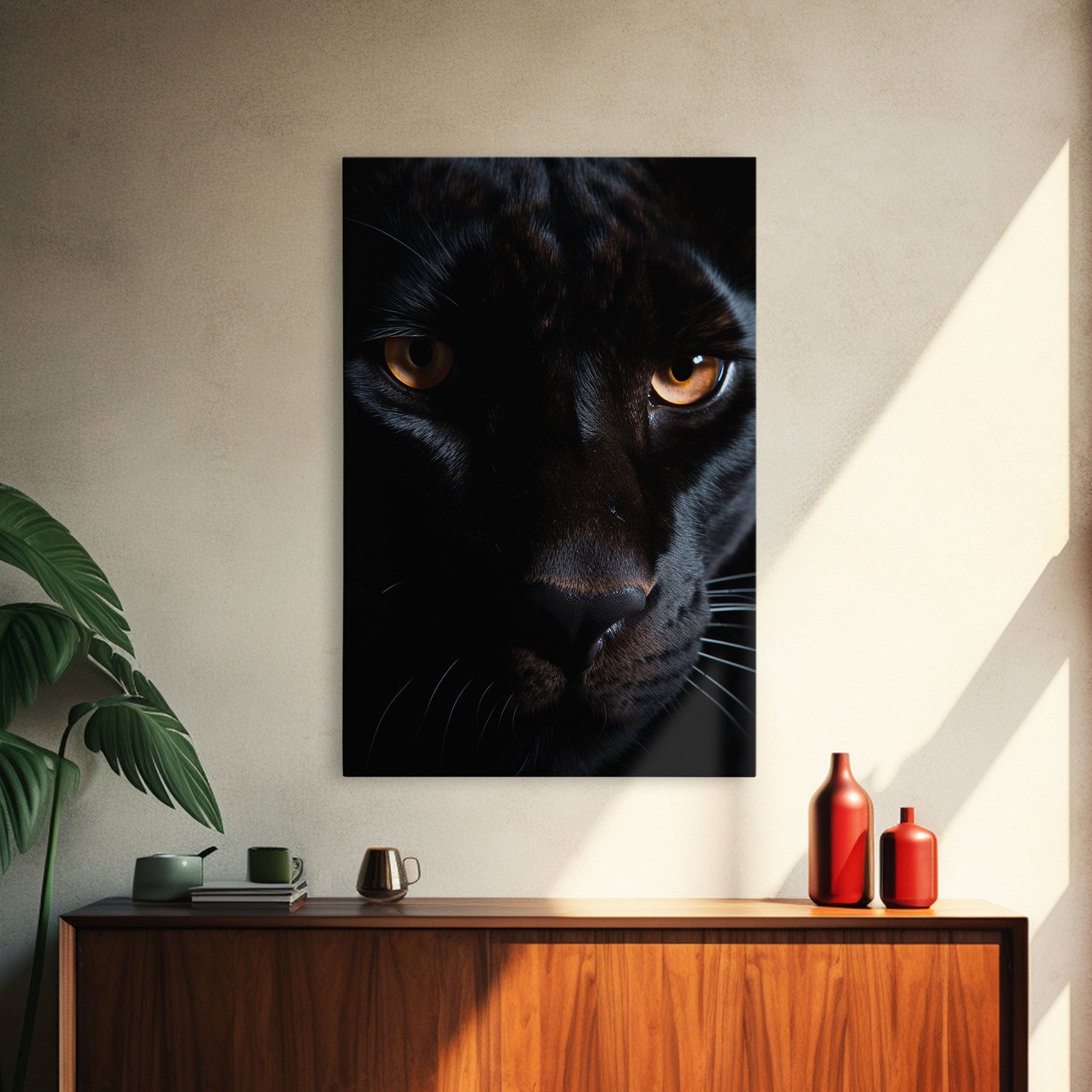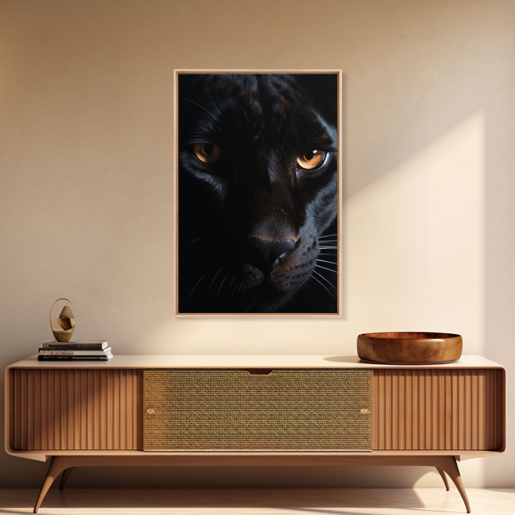 Portrait Of A Predator, Black Cat, Black Panther Photography, Framed Canvas Print, Wood Frame Wall Art
