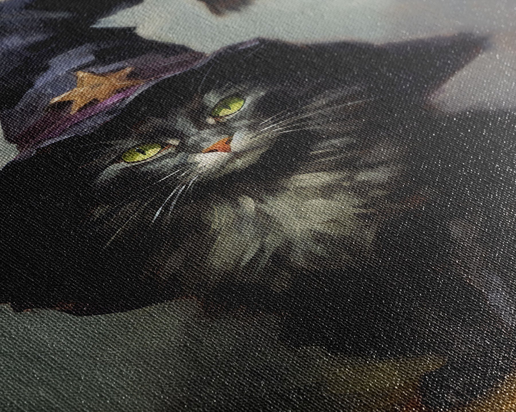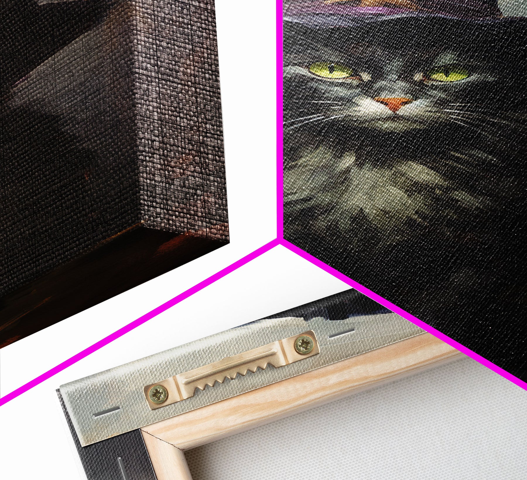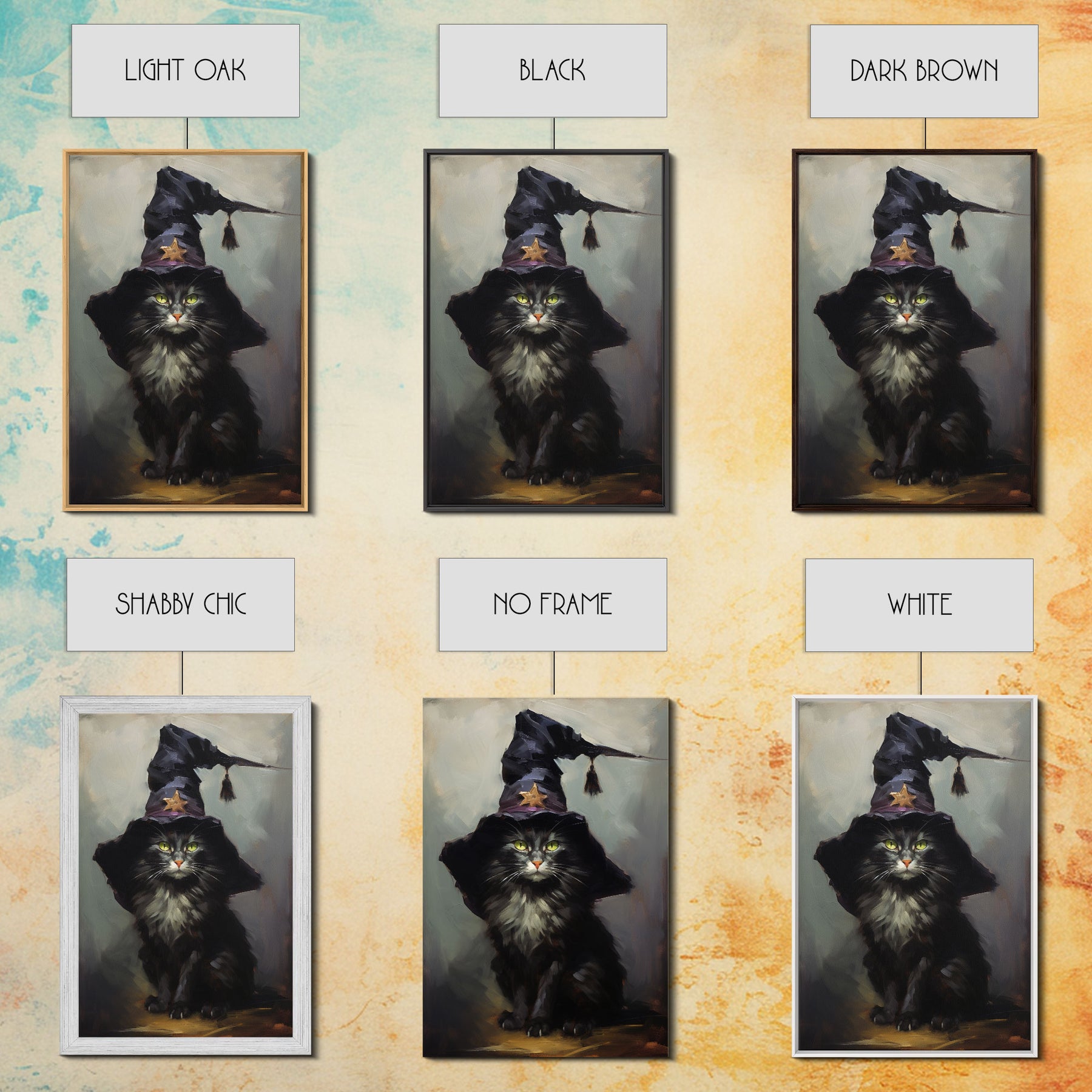 The Wizard Cat, Framed Canvas Print, Dark Academia Halloween Art, Victorian Cat Oil Painting, Goth Halloween Decor