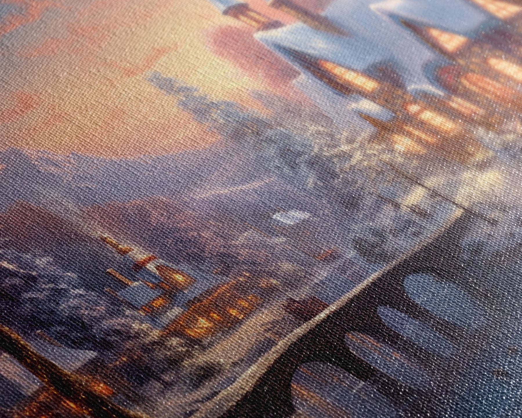 Most of our canvases are made in the USA, with the exception of canvases ordered with the light oak unstained frames, and any large canvases (24x48, 30x60, 16x48 and 20x60) ordered WITH a frame. These are temporarily made in and shipped from Europe, while we try to find a more consistent supplier in the USA.