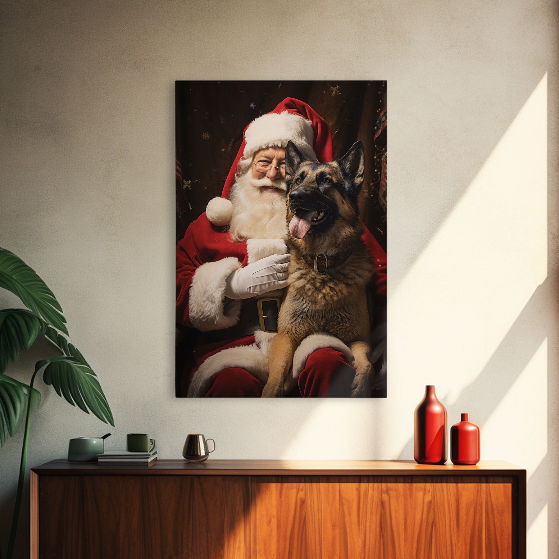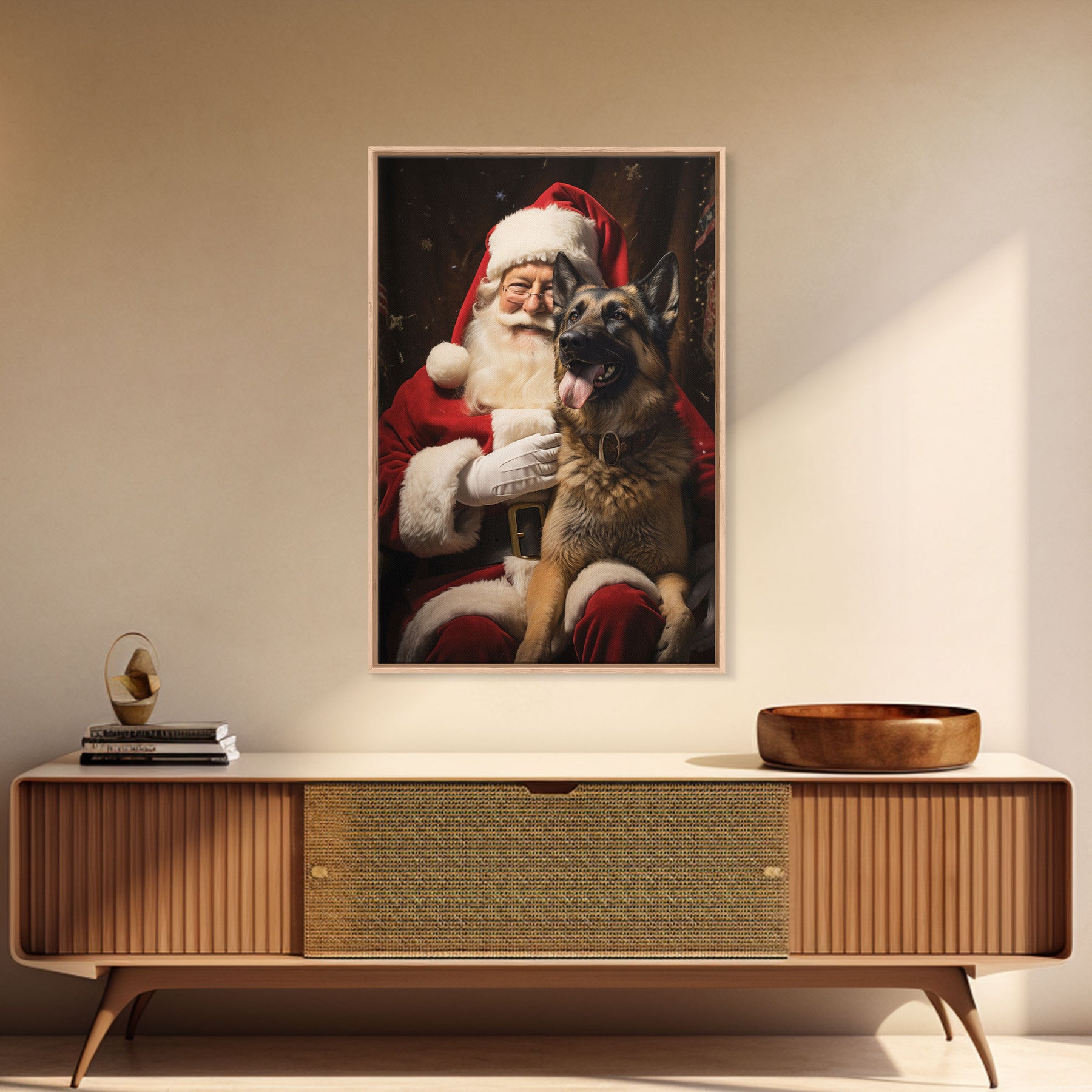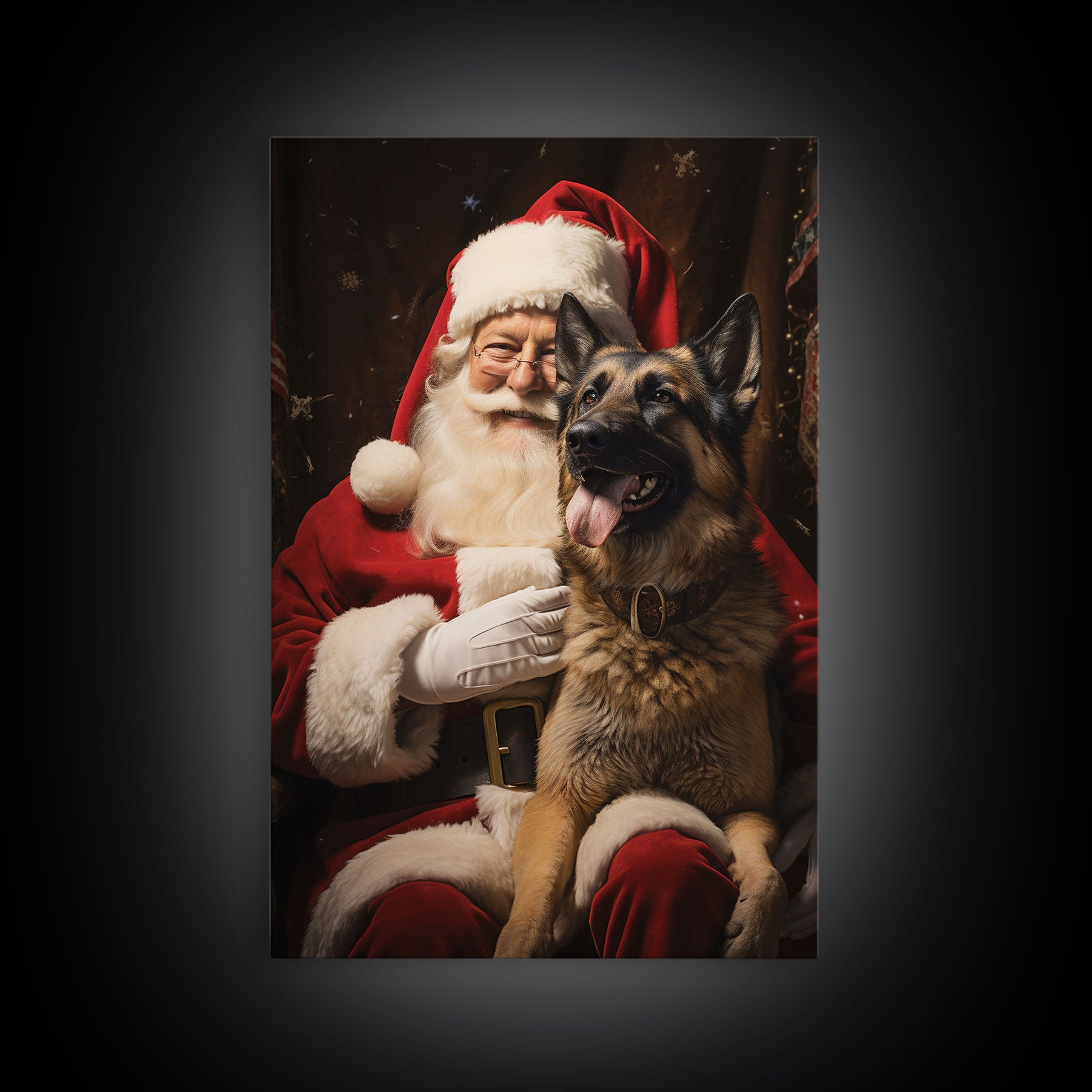 Santa Claus And His Belgian Malinois, Christmas Wall Art, Dog Gift, Christmas Dog, Winter Wall Art, Santa Decor, Santa Art Print, Cute Dog