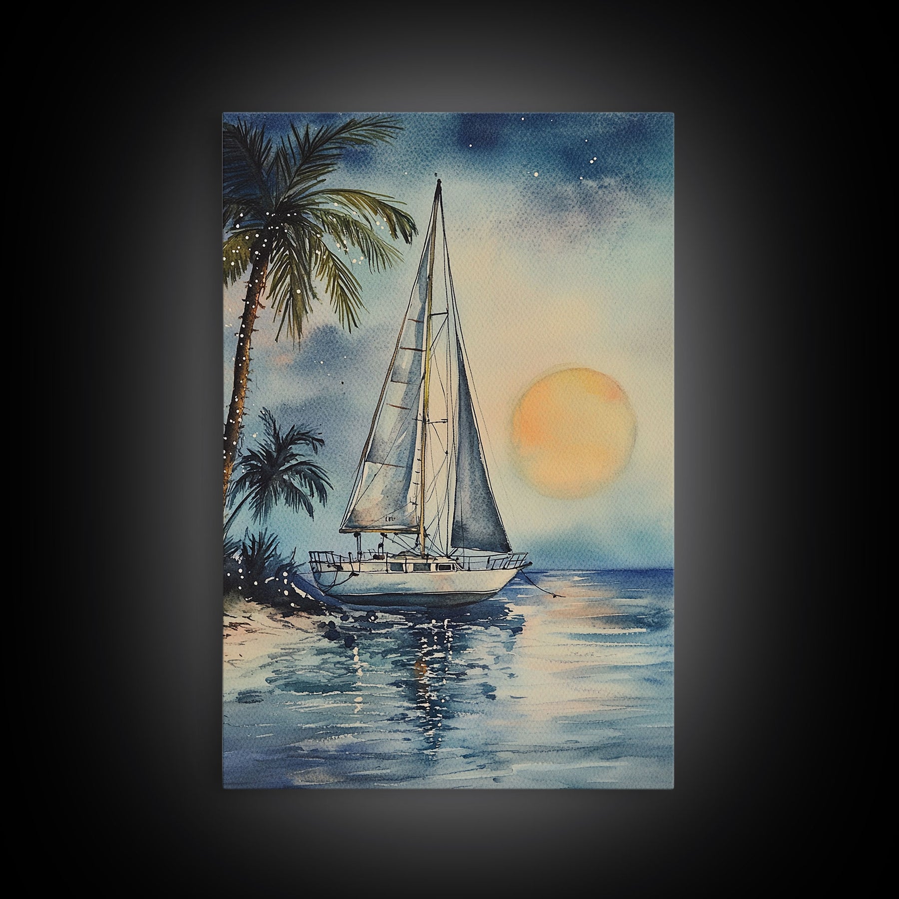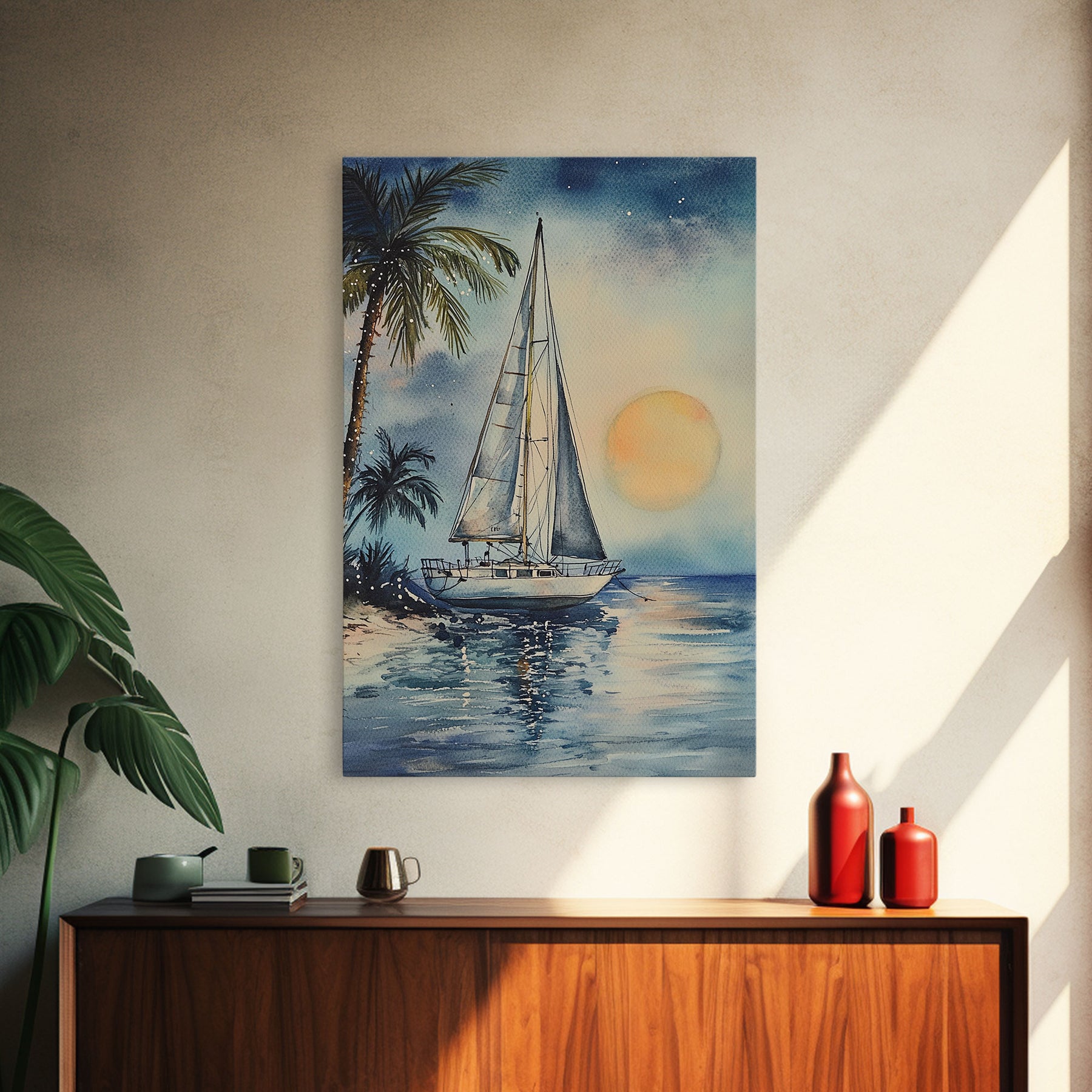 Sailboats In The Winter, Lake House Decor, Colorful Christmas Wall Art, Winter Decor, Holiday Art, Holiday Decor, Christmas handmade Art