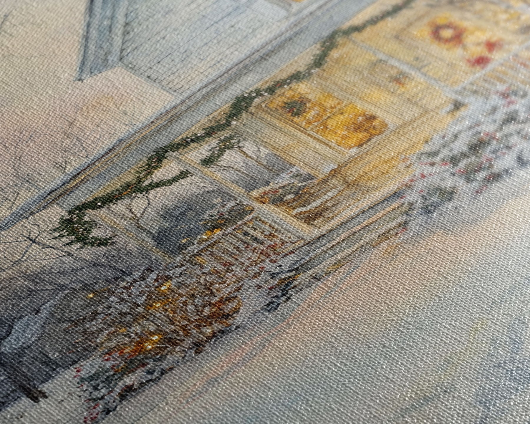 Most of our canvases are made in the USA, with the exception of canvases ordered with the light oak unstained frames, and any large canvases (24x48, 30x60, 16x48 and 20x60) ordered WITH a frame. These are temporarily made in and shipped from Europe, while we try to find a more consistent supplier in the USA.