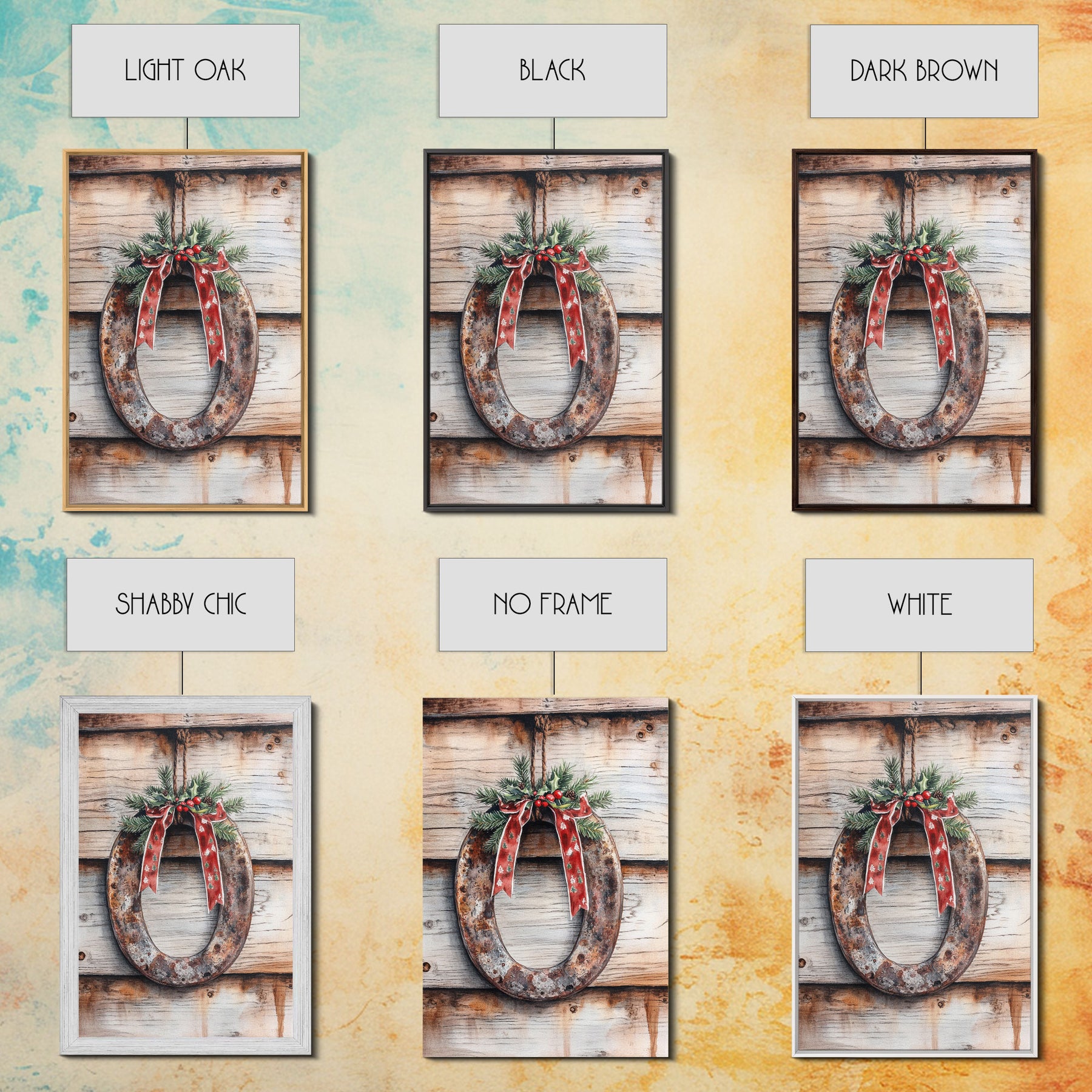 Christmas Horseshoe Framed Canvas Print, Horse Shoe With Mistletoe, Wood Framed Christmas Art, Western Decor, Boho Christmas, Minimalist
