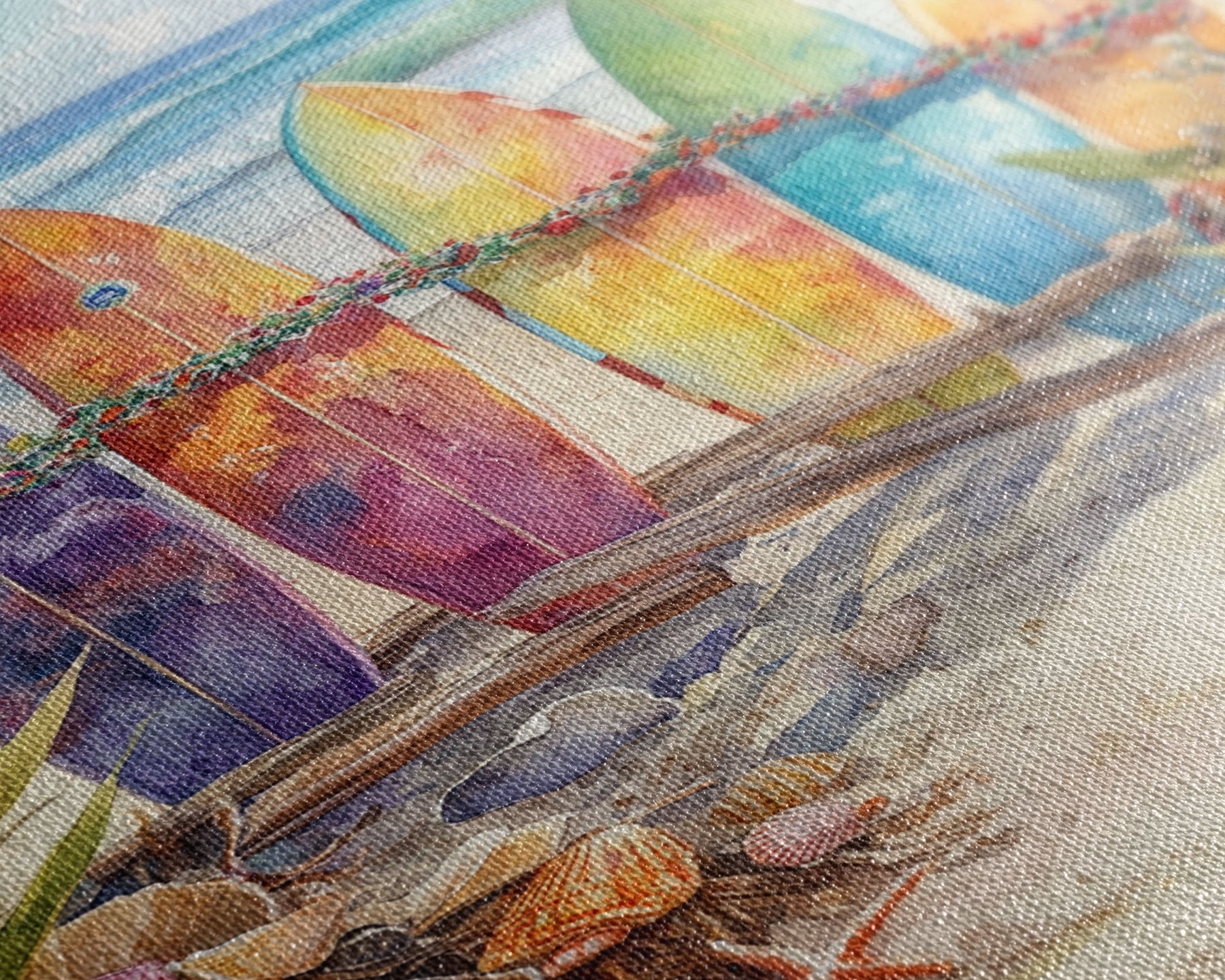 Most of our canvases are made in the USA, with the exception of canvases ordered with the light oak unstained frames, and any large canvases (24x48, 30x60, 16x48 and 20x60) ordered WITH a frame. These are temporarily made in and shipped from Europe, while we try to find a more consistent supplier in the USA.