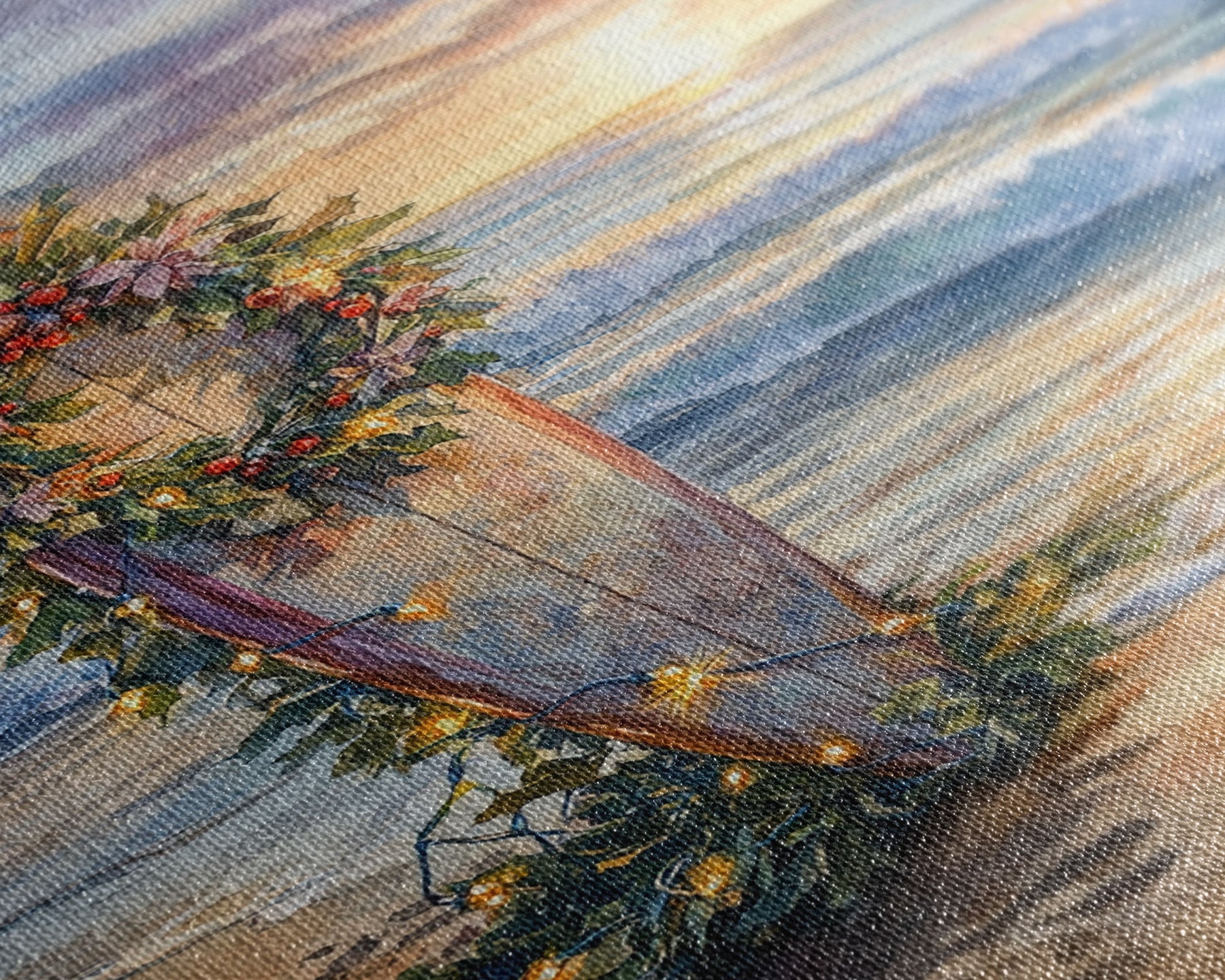Most of our canvases are made in the USA, with the exception of canvases ordered with the light oak unstained frames, and any large canvases (24x48, 30x60, 16x48 and 20x60) ordered WITH a frame. These are temporarily made in and shipped from Europe, while we try to find a more consistent supplier in the USA.