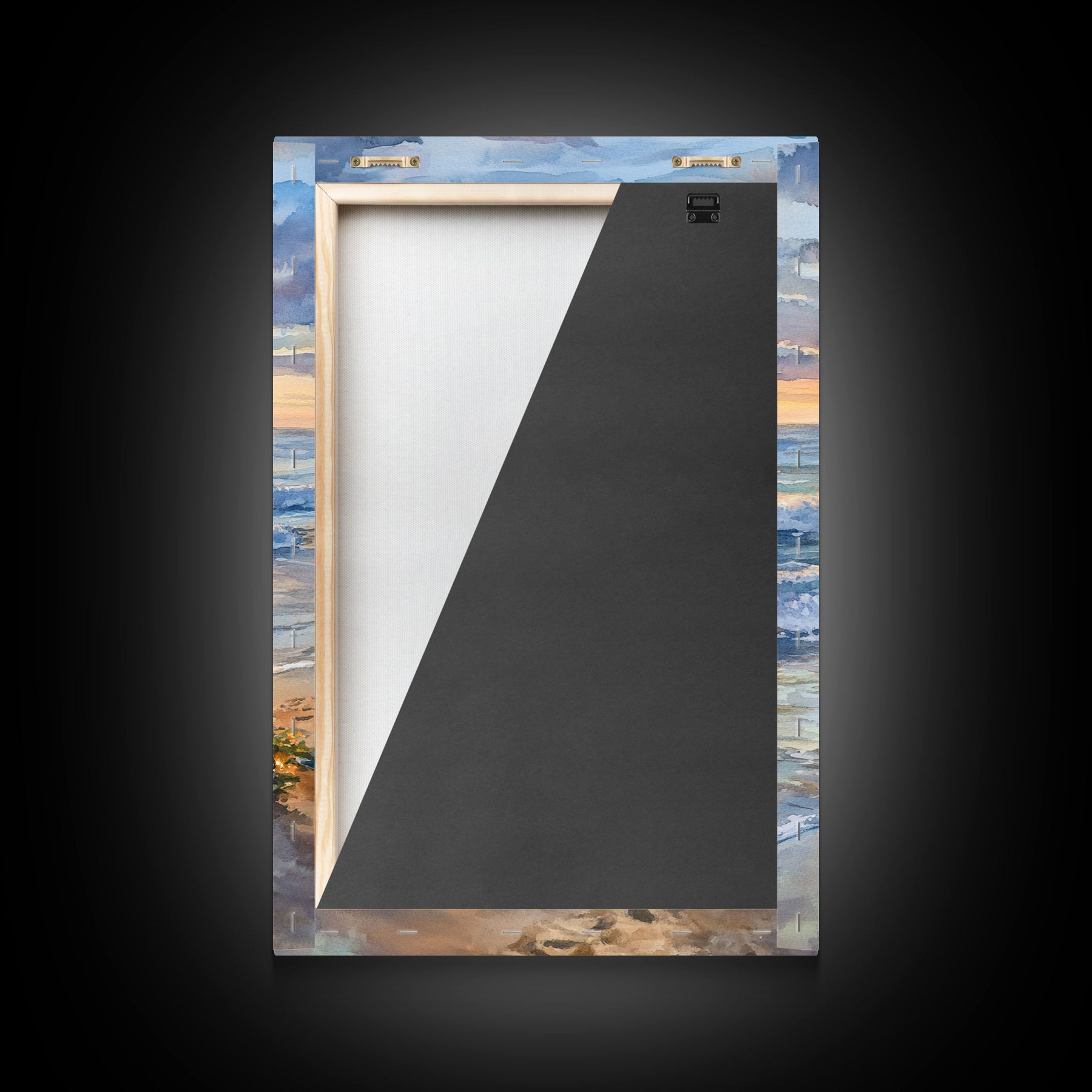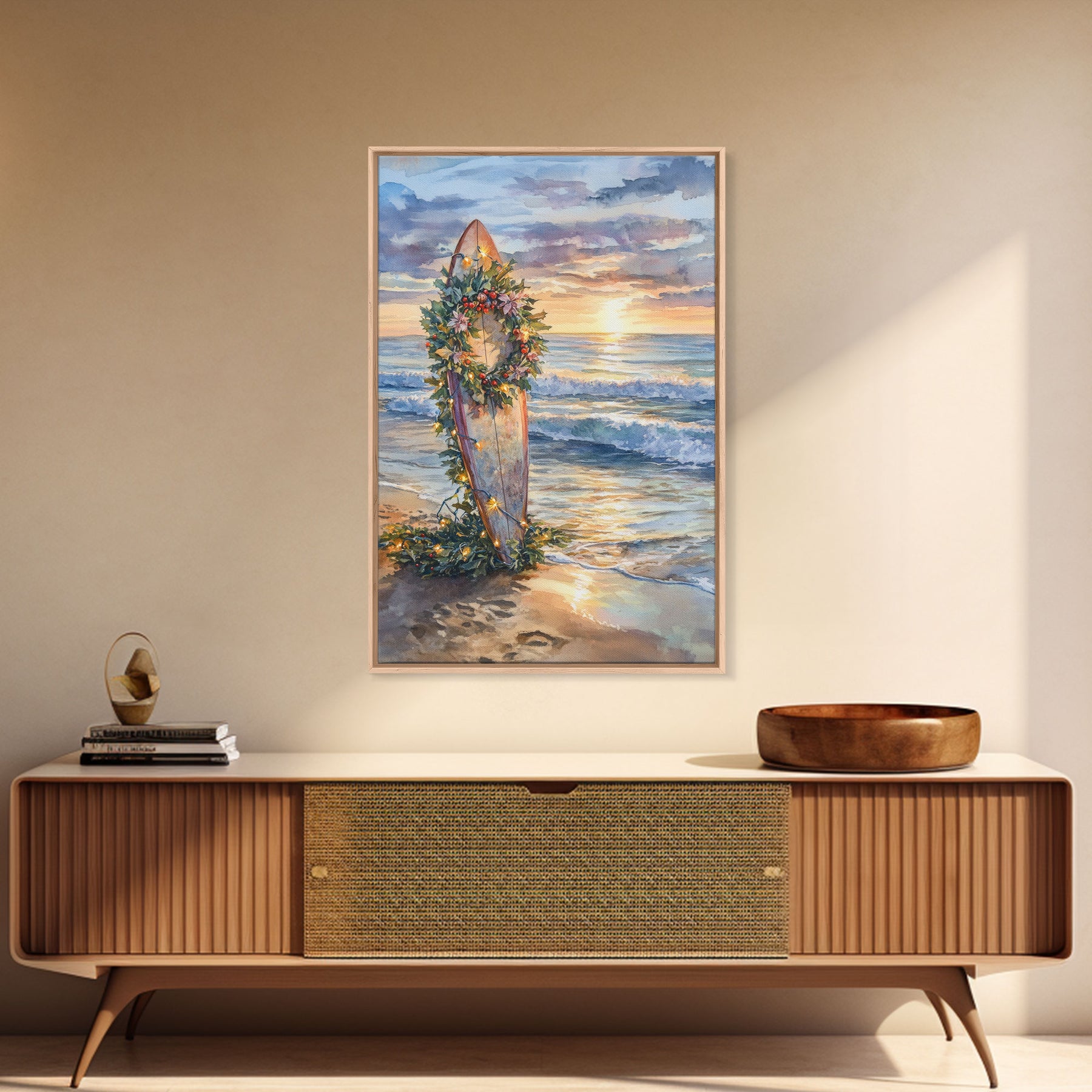 Beach Christmas Decor, Framed Canvas Print, Christmas At The Beach, Nautical / Tropical Holiday Wall Art