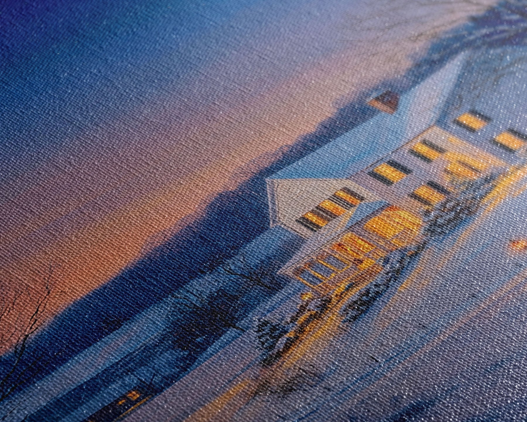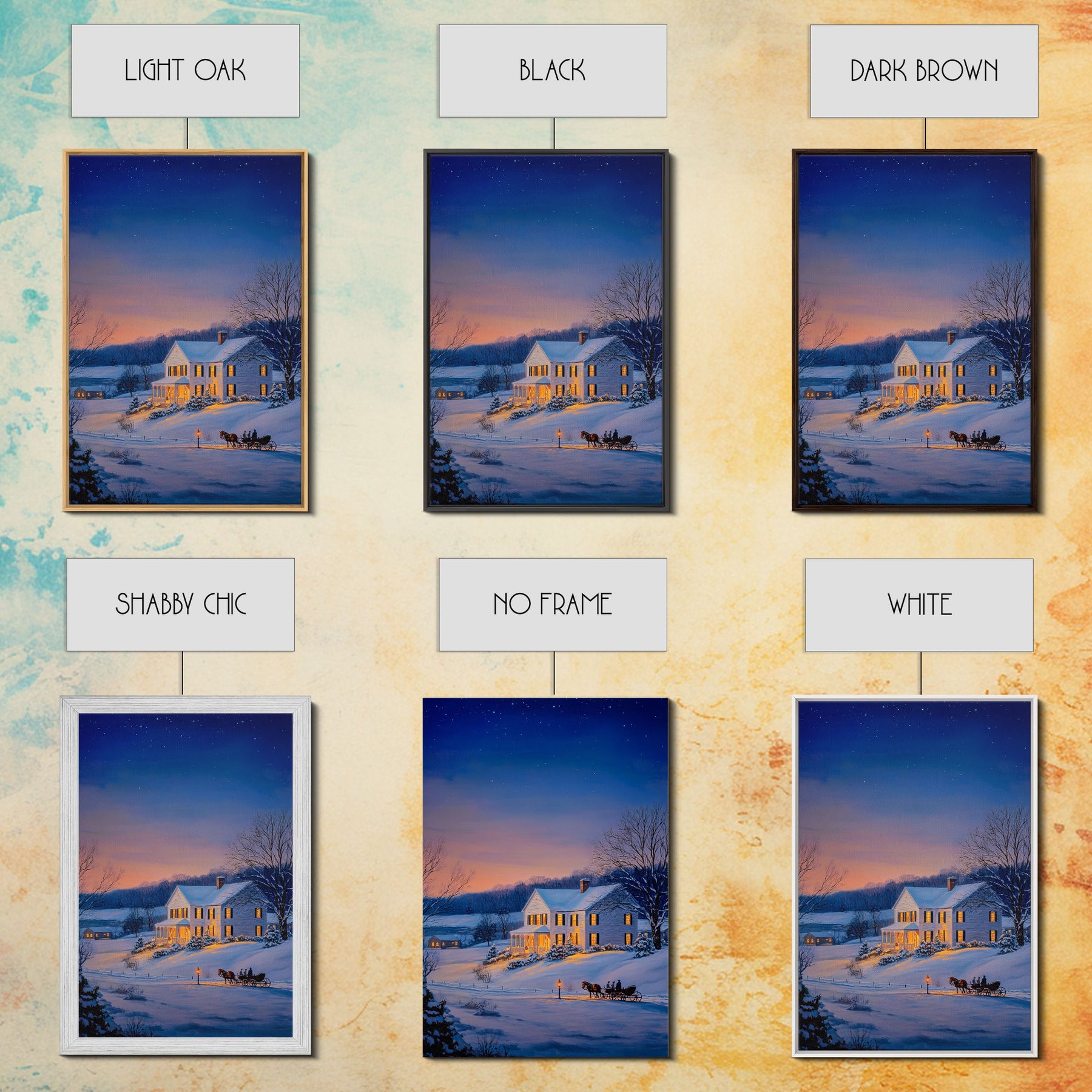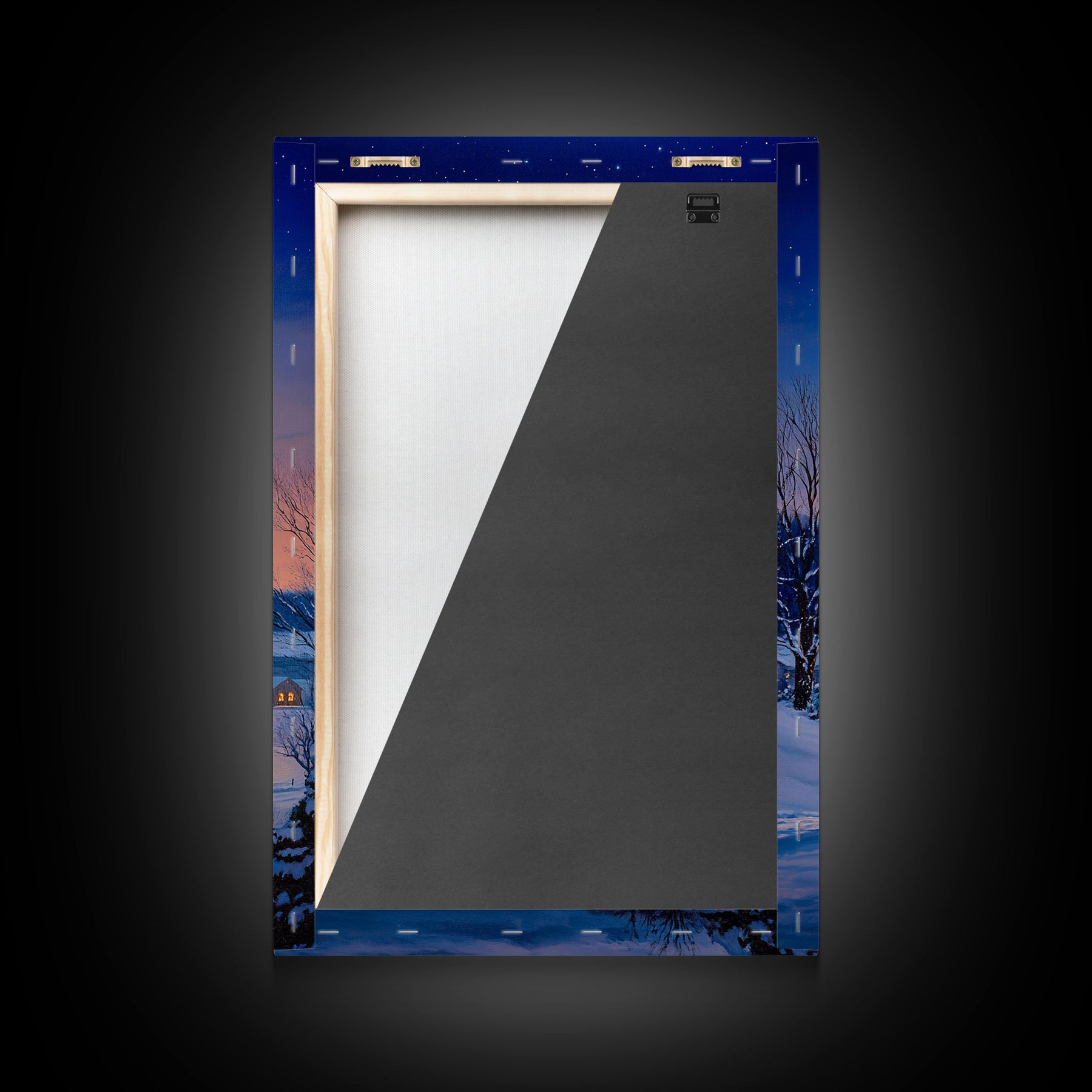 Cozy Snowy House Winter Landscape Framed Canvas Print Wall Art Christmas Decor, Country Christmas Art Gift, Winter Wonderland Art